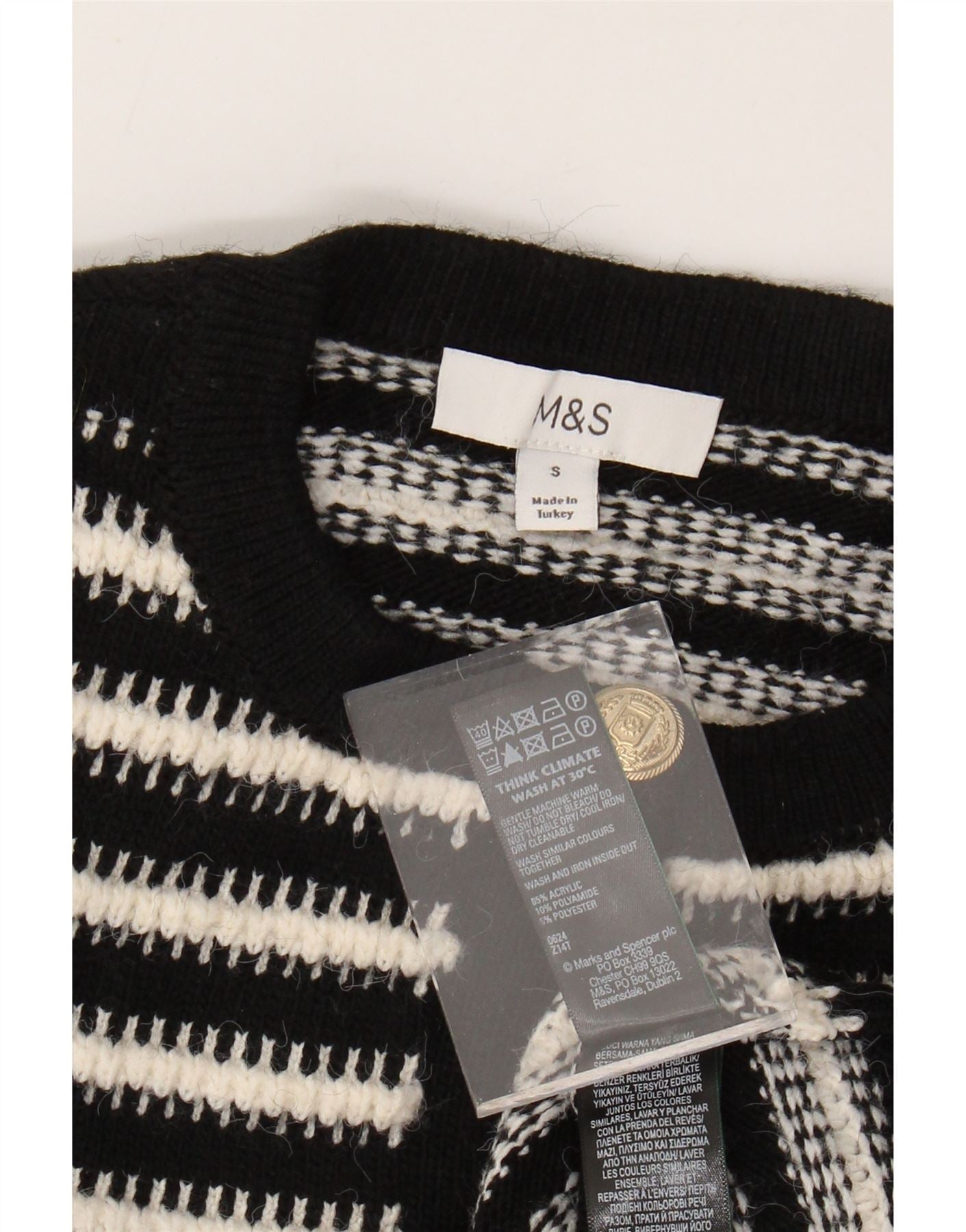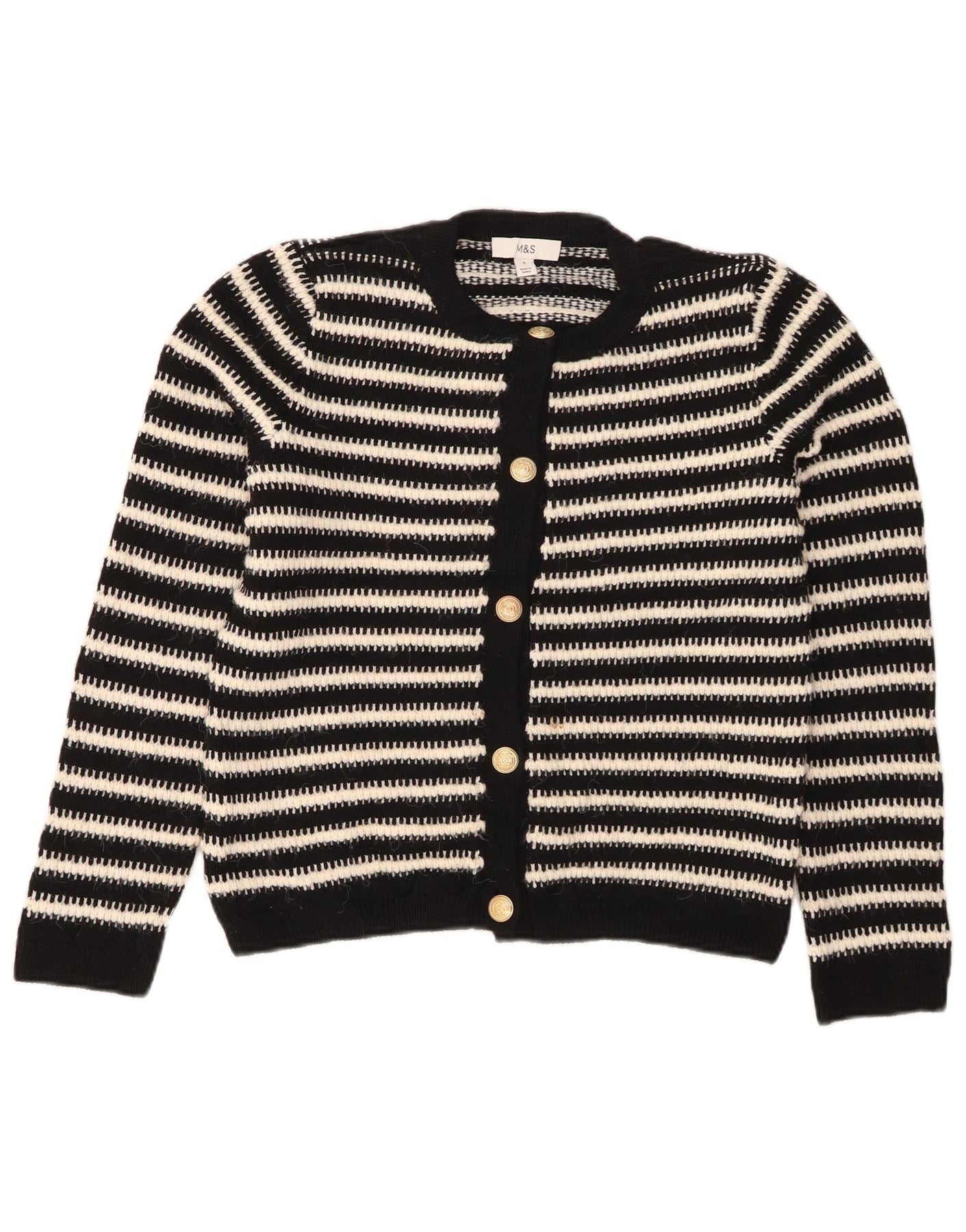 MARKS & SPENCER Pull Cardigan Femme UK 10 Petit Acrylique Rayé Noir