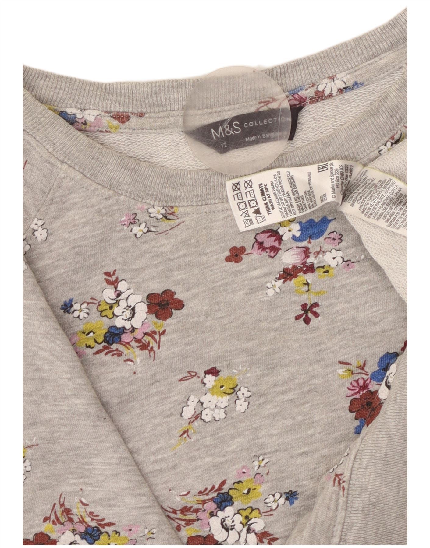 MARKS & SPENCER Sweat-shirt court pour femme UK 12 Gris moyen floral