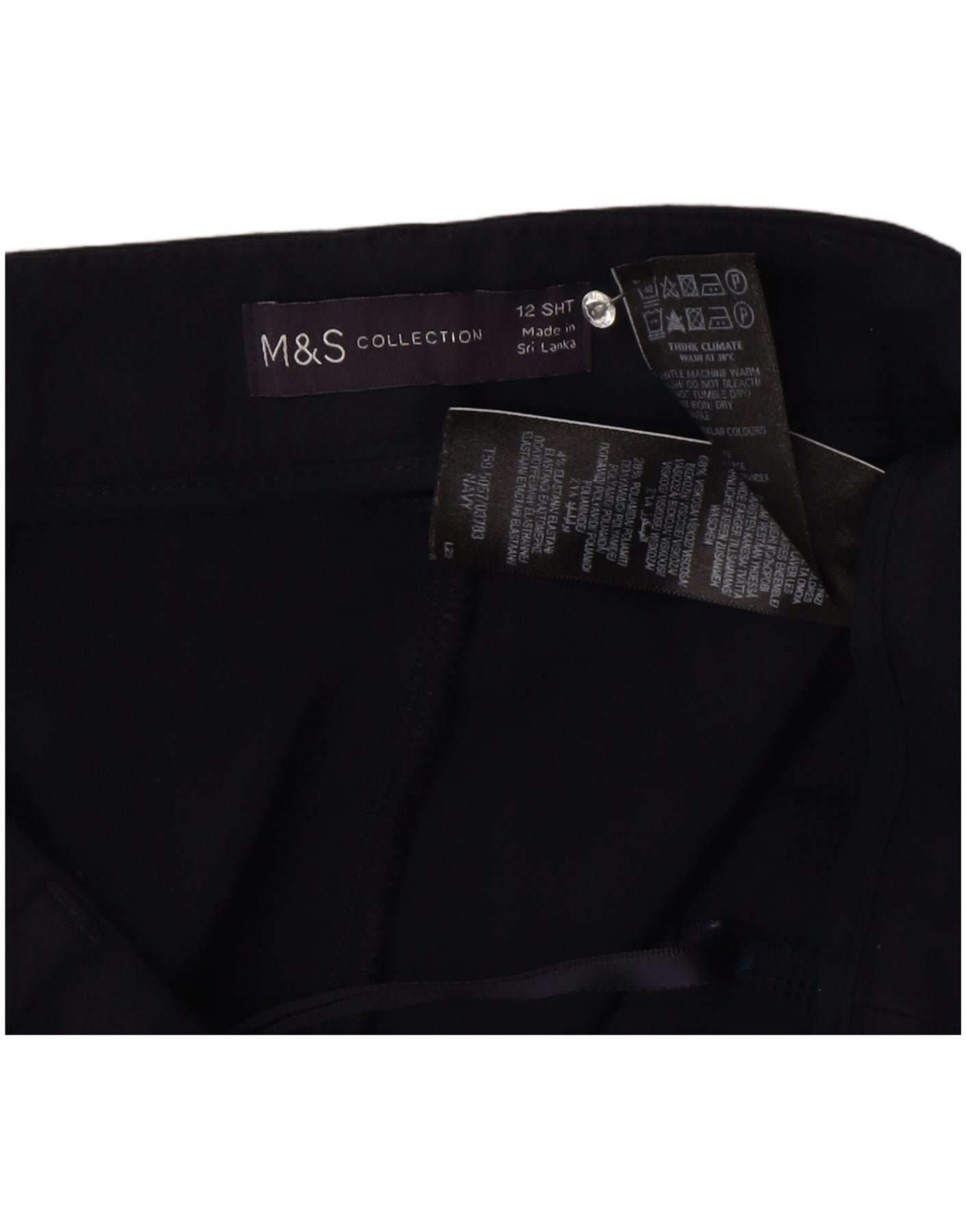 - Description de l'IA : Ce pantalon court Marks & Spencer pour femme est confectionné à partir d'un tissu mélangé bleu marine, offrant une sensation de douceur avec une élasticité supplémentaire pour plus de confort. Il présente une taille mi-haute et une fermeture zippée pour une finition soignée. La coupe régulière assure une silhouette confortable. Des poches pratiques sont incluses. La longueur courte offre un look moderne et polyvalent, parfait pour diverses occasions.