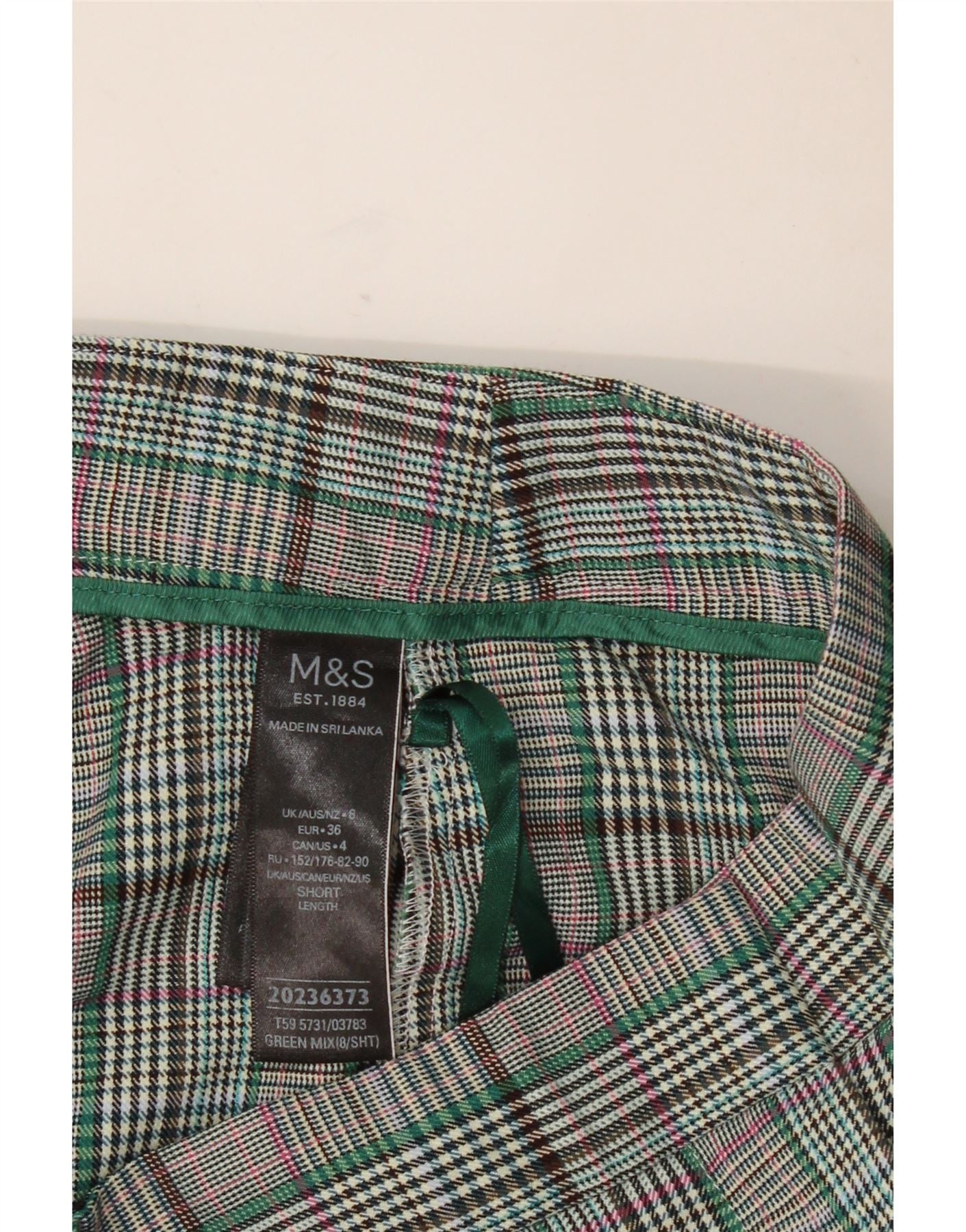 - Description de l'IA : Ce pantalon court Marks & Spencer pour femme est confectionné dans un tissu tissé avec une finition lisse. Ils présentent un motif à carreaux classique dans un mélange multicolore sophistiqué de gris, vert et noir. La taille mi-haute comprend un design élastique à enfiler pour plus de confort et de facilité. Une coupe régulière assure une silhouette confortable. La longueur courte offre un style moderne et polyvalent, parfait pour une tenue décontractée et élégante.