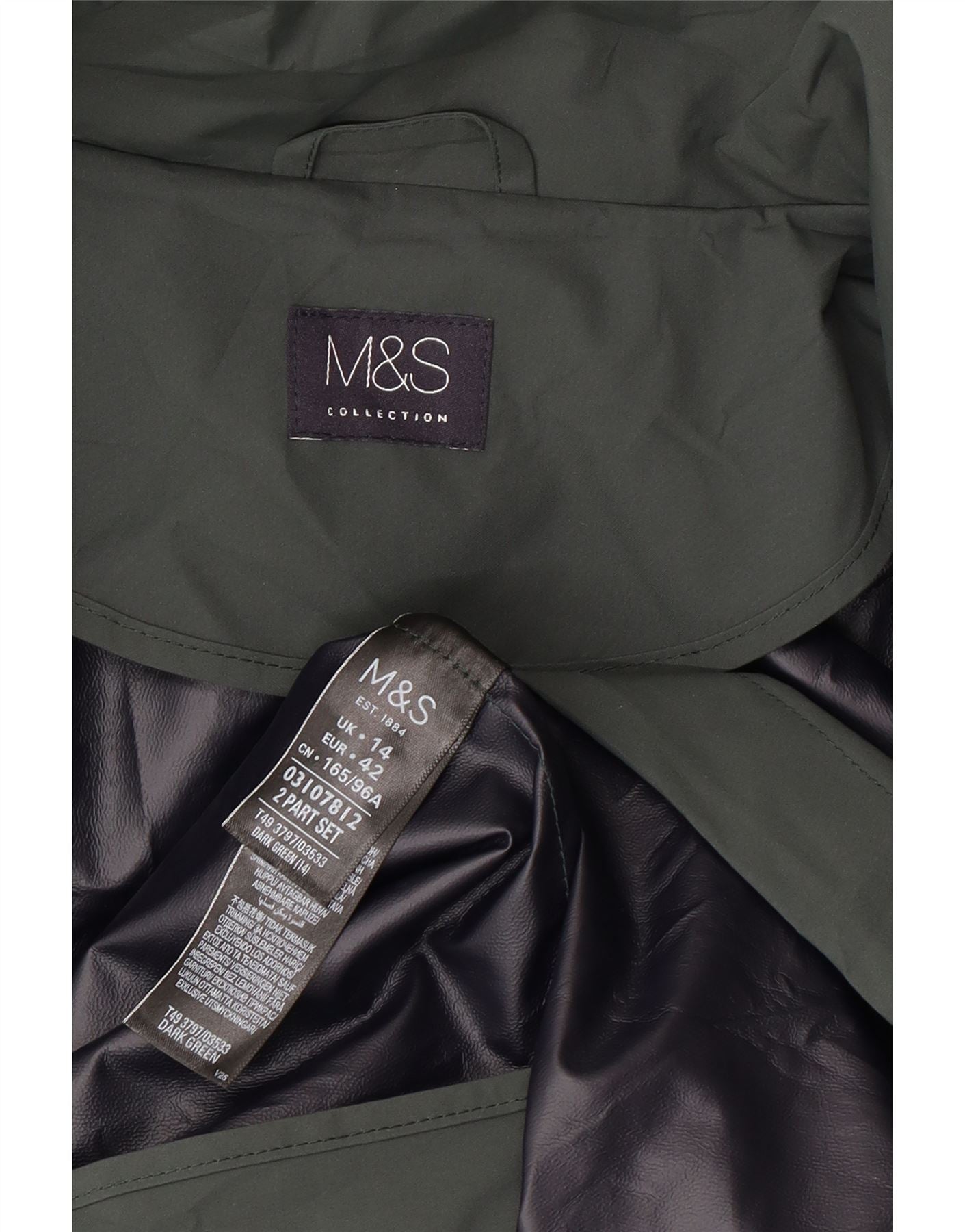 Marks & Spencer Manteau imperméable à capuche pour femme UK 44 Large Vert Polyester
