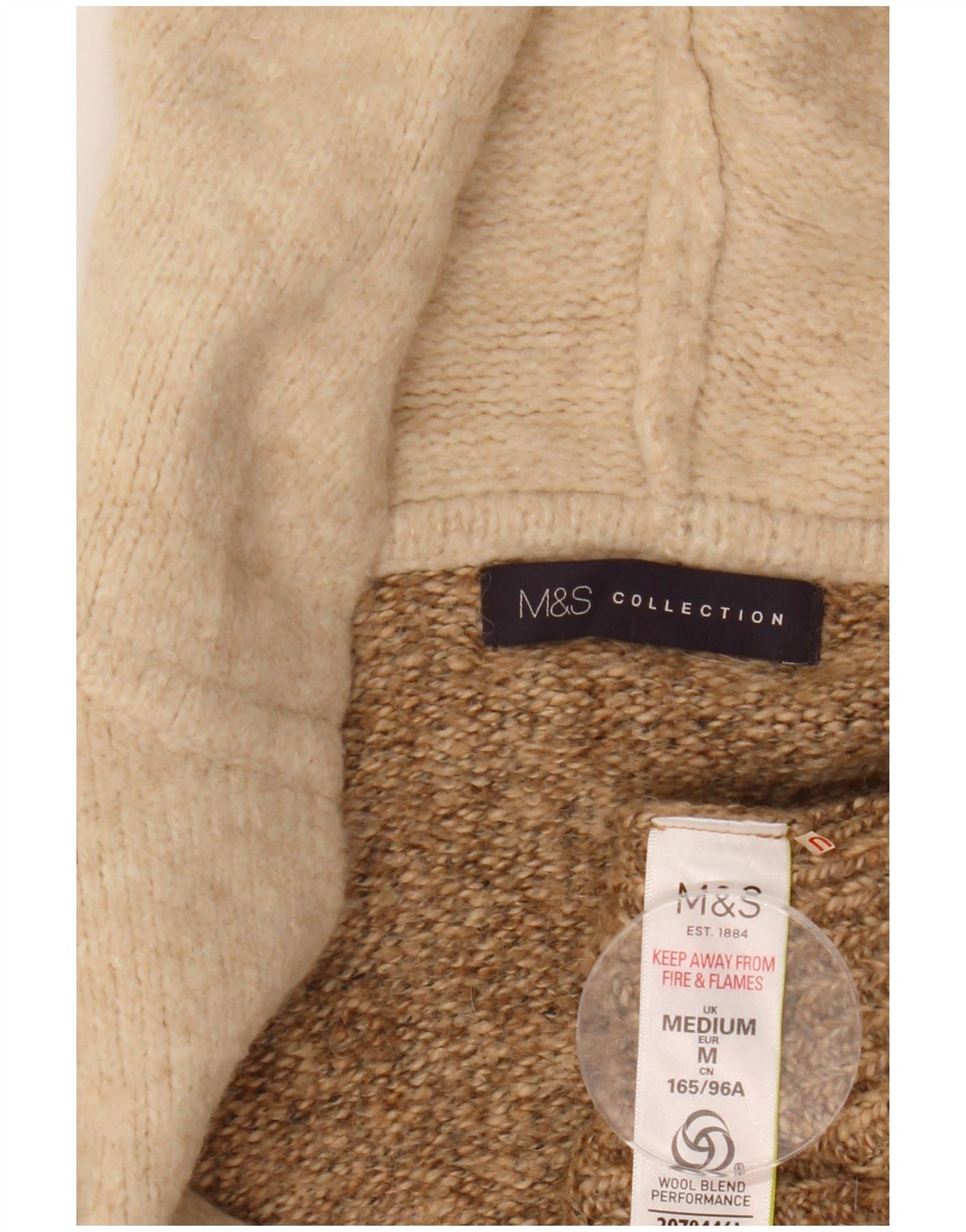 - Description de l'IA : Ce pull cardigan Marks & Spencer pour femme est confectionné à partir d'un tricot performant en mélange de laine douce. Il présente un motif à chevrons distinctif dans des tons beige et marron. Le design à capuche offre plus de chaleur et de style. Les manches longues offrent une couverture confortable. Sa coupe longue et décontractée se drape élégamment, assurant à la fois confort et une silhouette moderne.