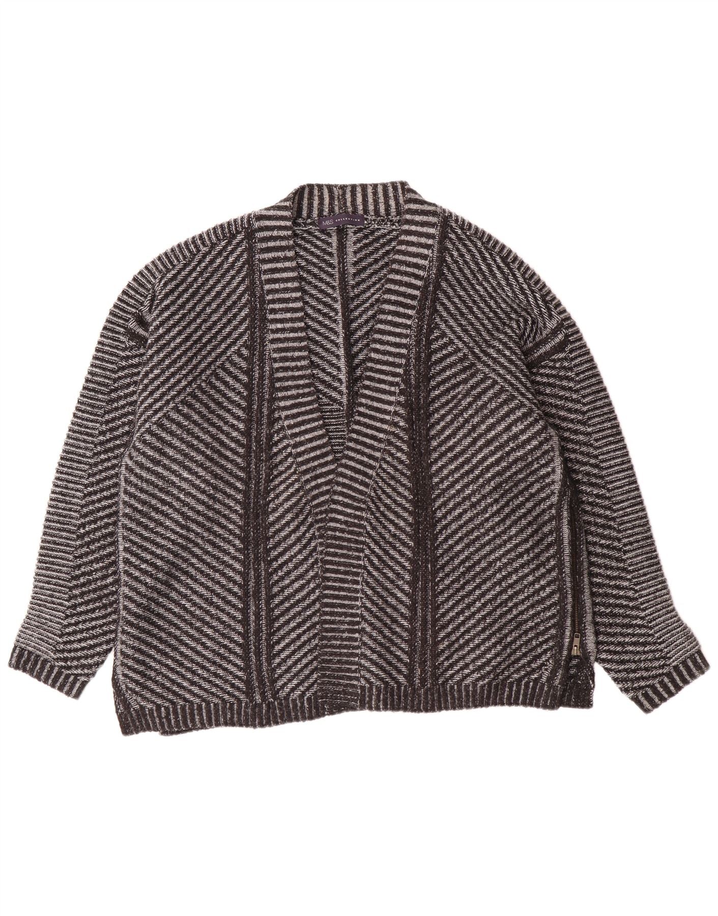 Marks & Spencer Pull Cardigan Ouvert pour Femme UK 26 5XL Acrylique Rayé Gris