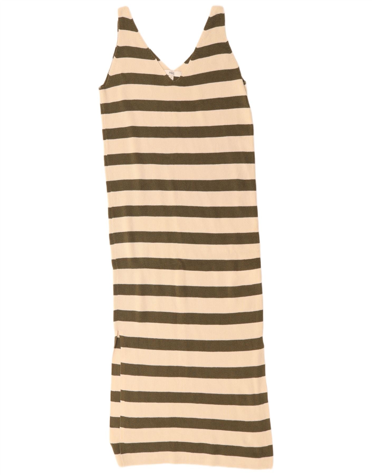 Marks & Spencer Robe pull sans manches pour femme UK 44 Vert moyen rayé