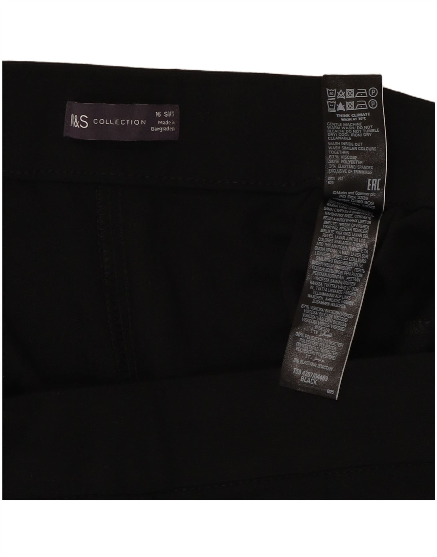 MARKS & SPENCER Pantalon court droit pour femme UK 16 Large W34 L24 Noir