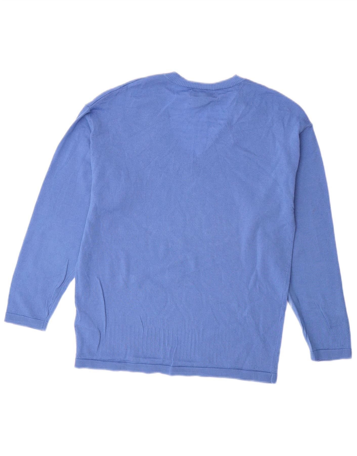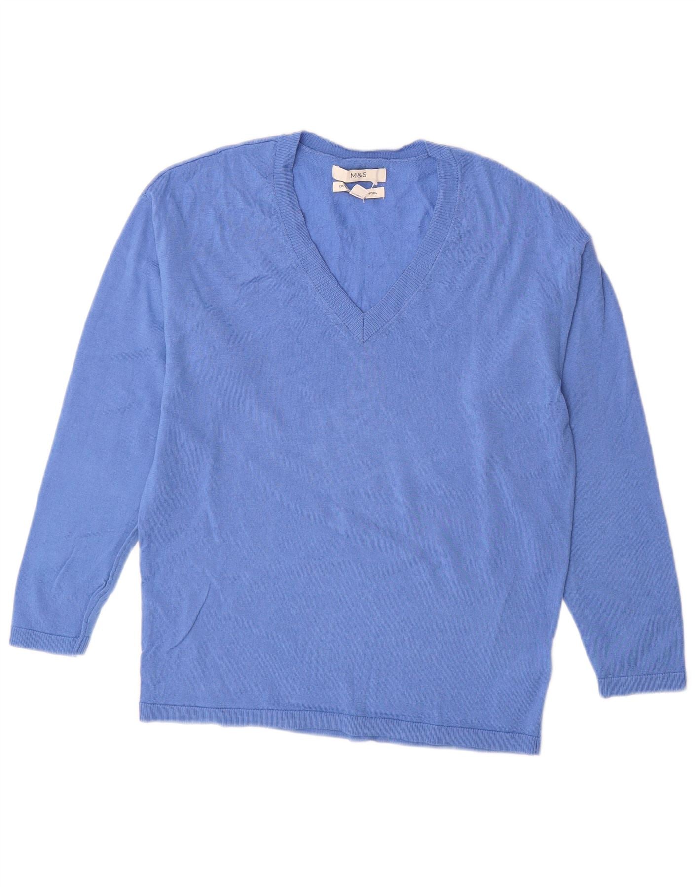 Marks & Spencer Pull col en V pour femme UK 6 XS Bleu laine mérinos