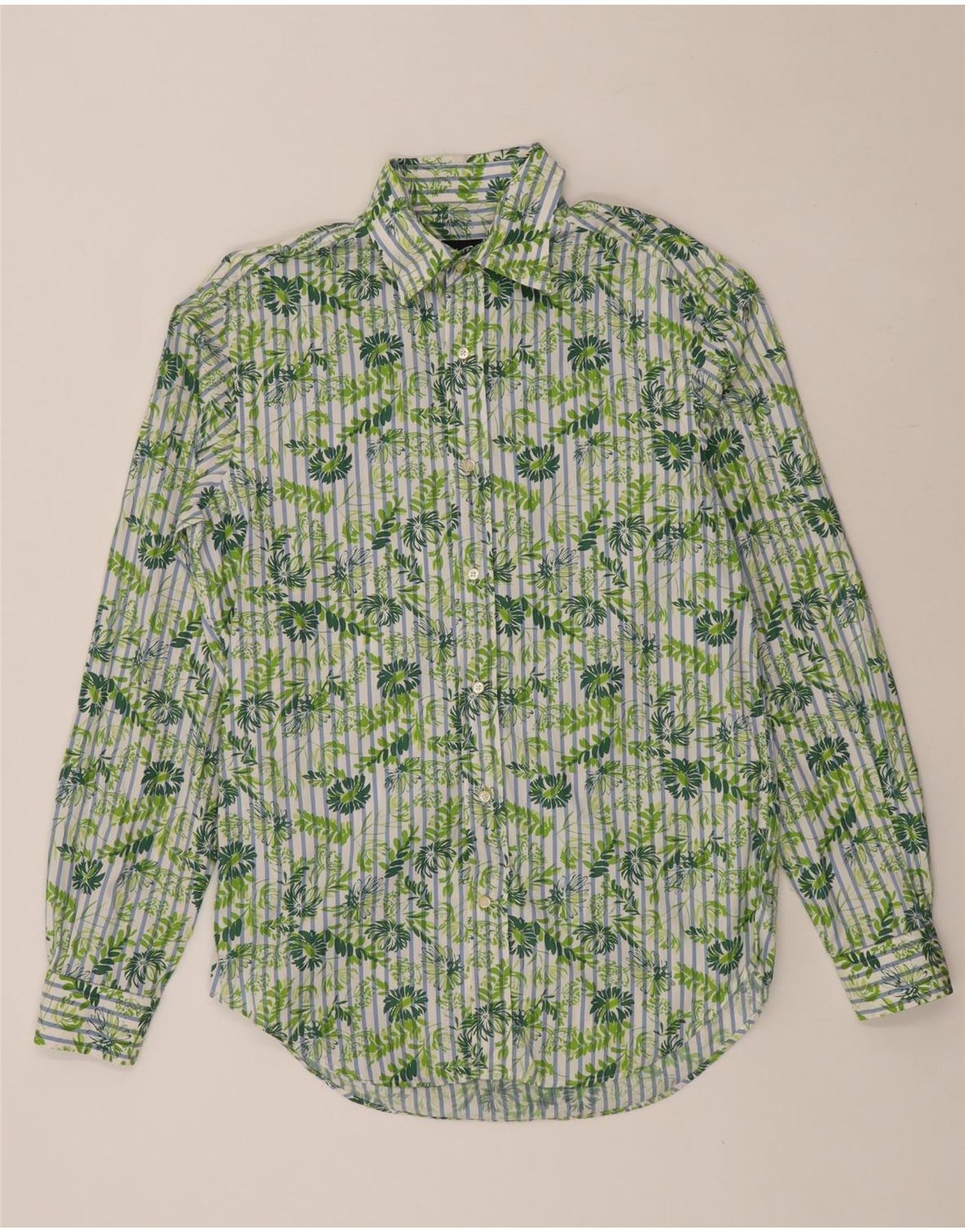 MASSIMO DUTTI Chemise Homme Taille 40 Coton Floral Vert Moyen