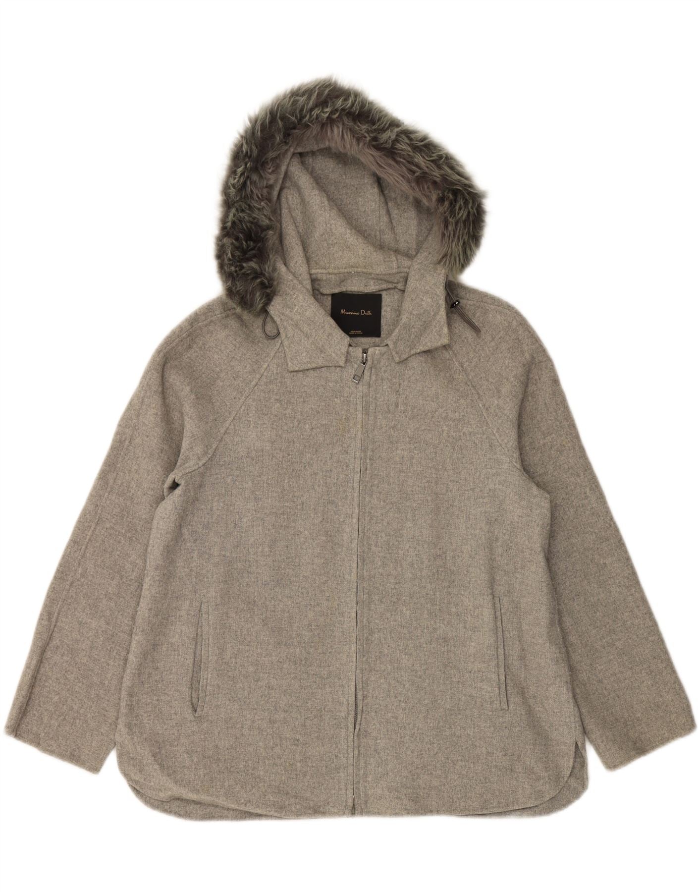 MASSIMO DUTTI Veste bomber à capuche pour femme UK 16 Large Gris