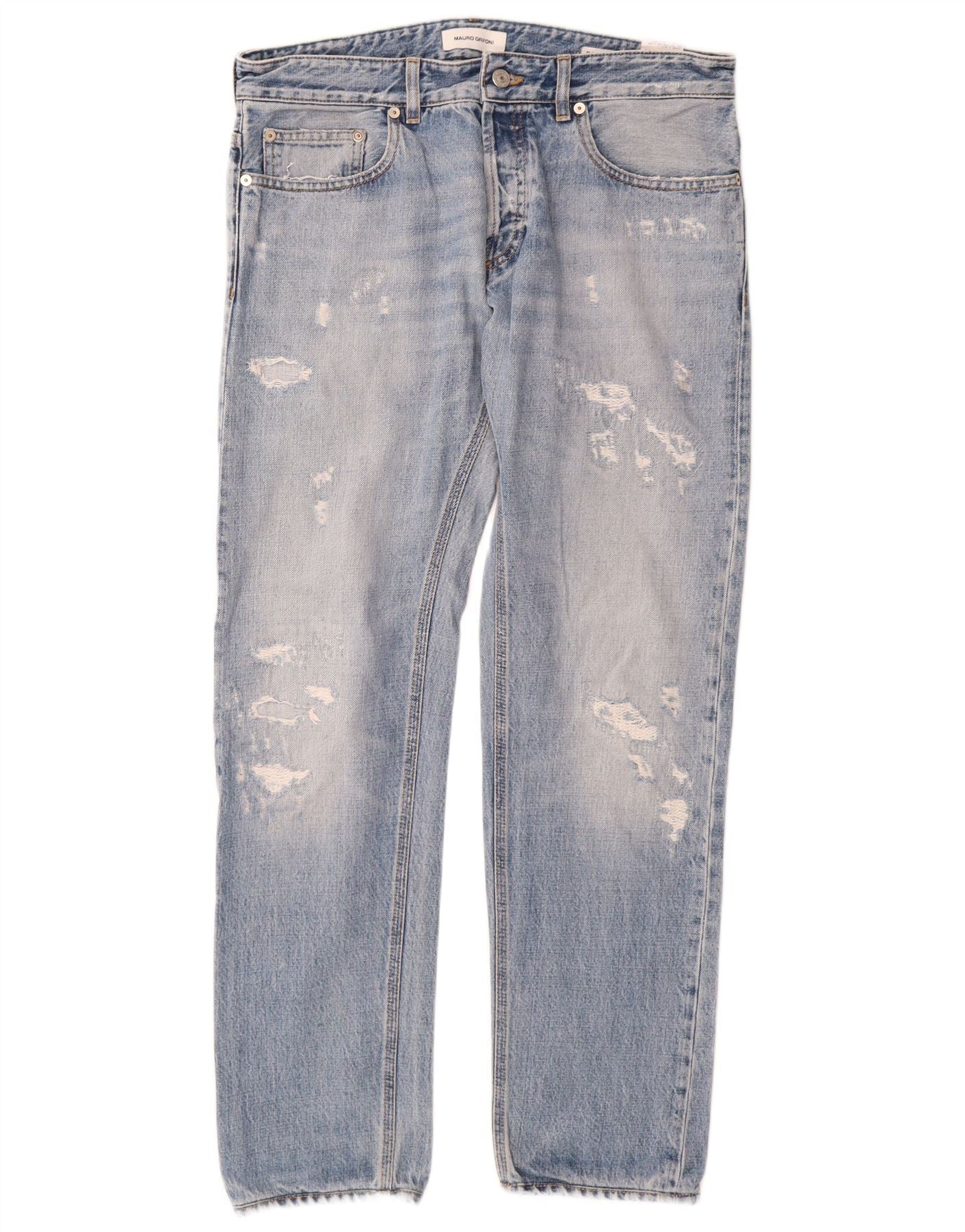 Mauro Grifoni Jean droit vieilli pour homme W33 L30 bleu coton
