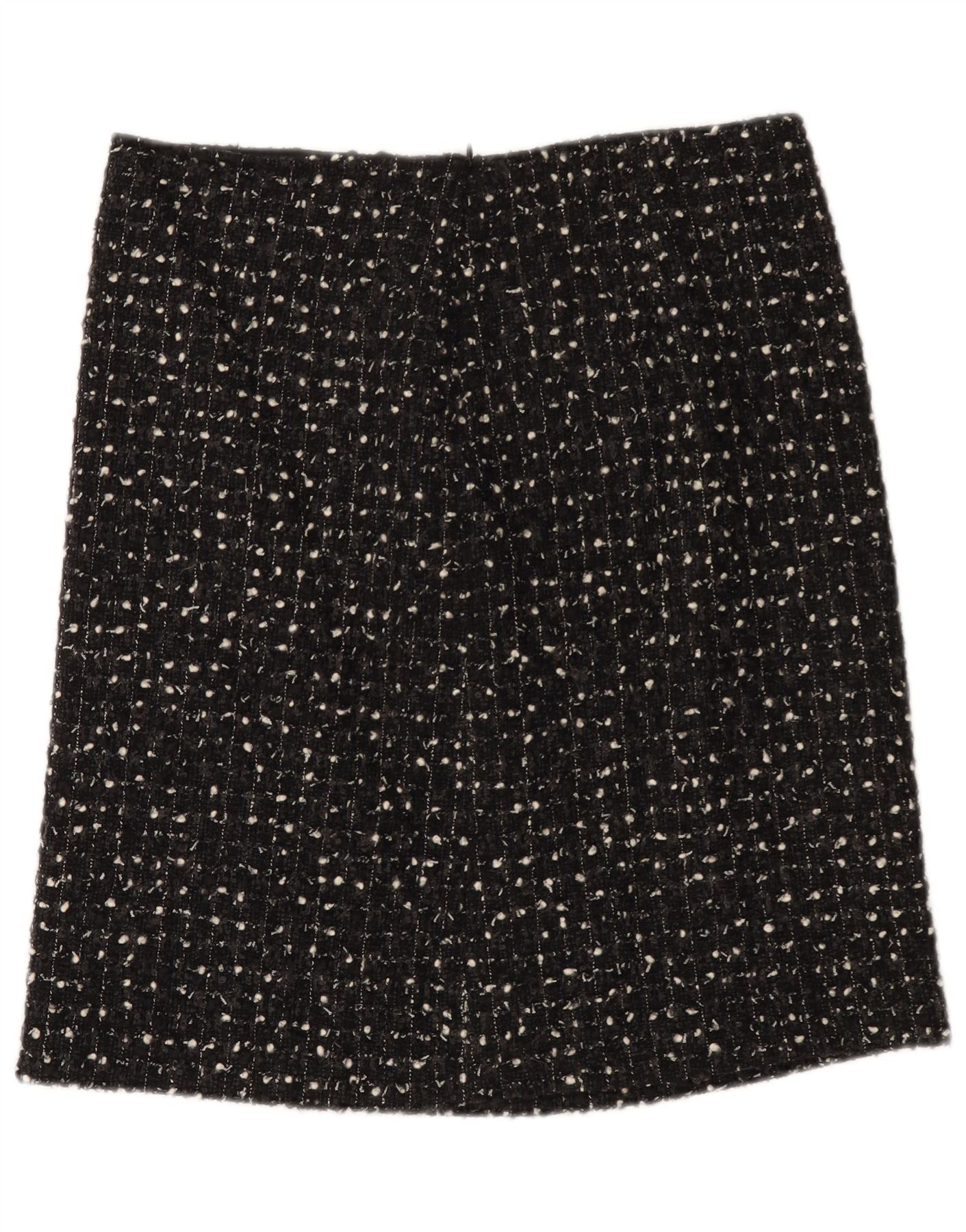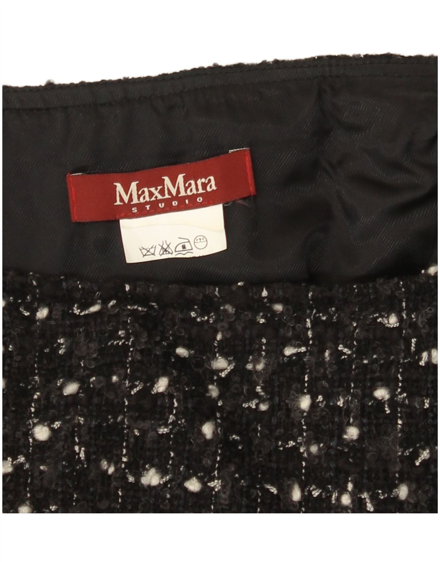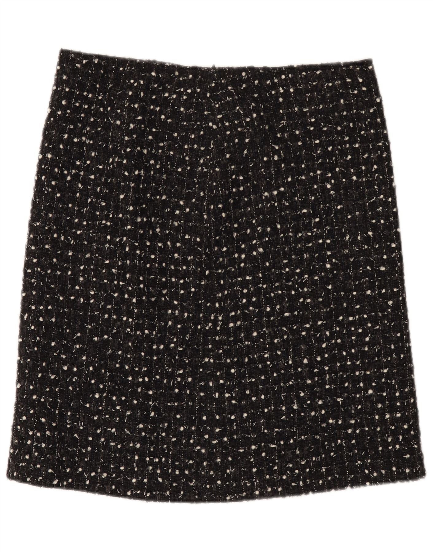 - AI Description: This Max Mara womens mini skirt is crafted from luxurious black tweed. It features an abstract pattern woven into the fabric. The slim fit offers a sleek silhouette. Its pull-on design ensures effortless wear. This classic piece combines sophistication with modern appeal.