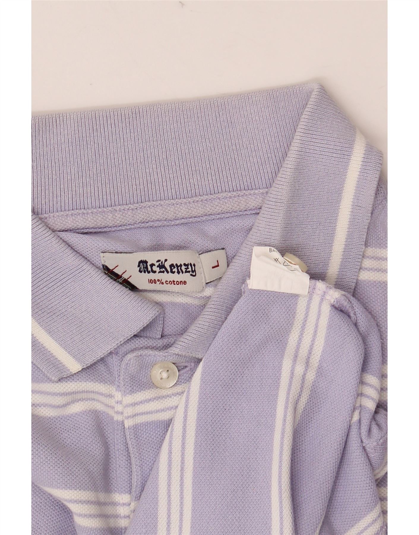 MCKENZY Polo Homme Large Violet Rayé Coton