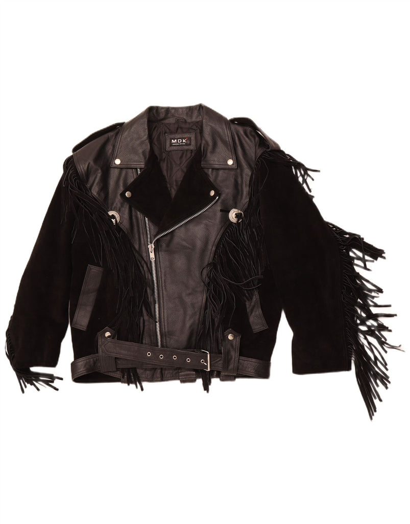 MDK Veste de motard en cuir coupe ample Western pour femme UK 14 Noir moyen