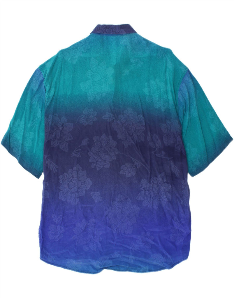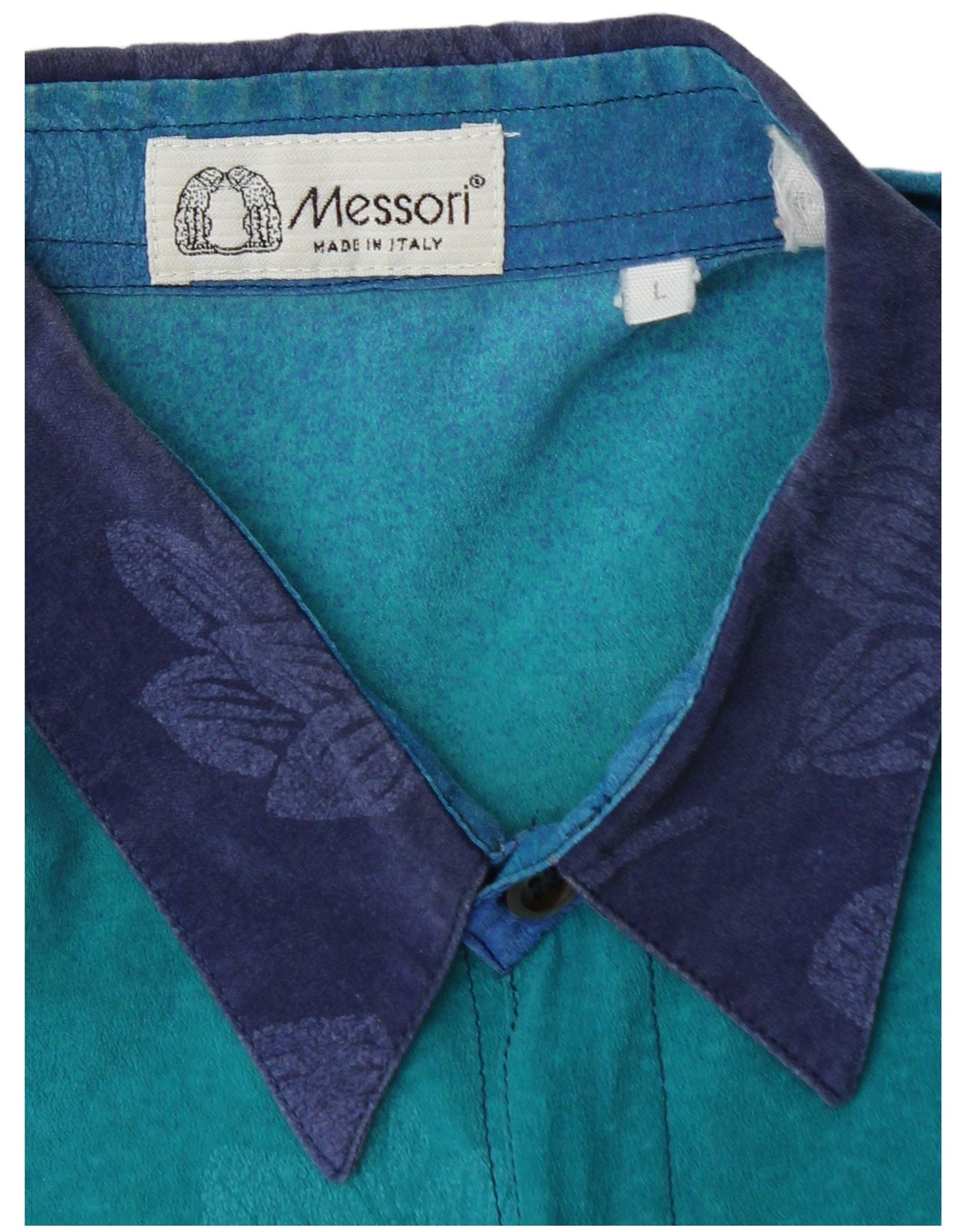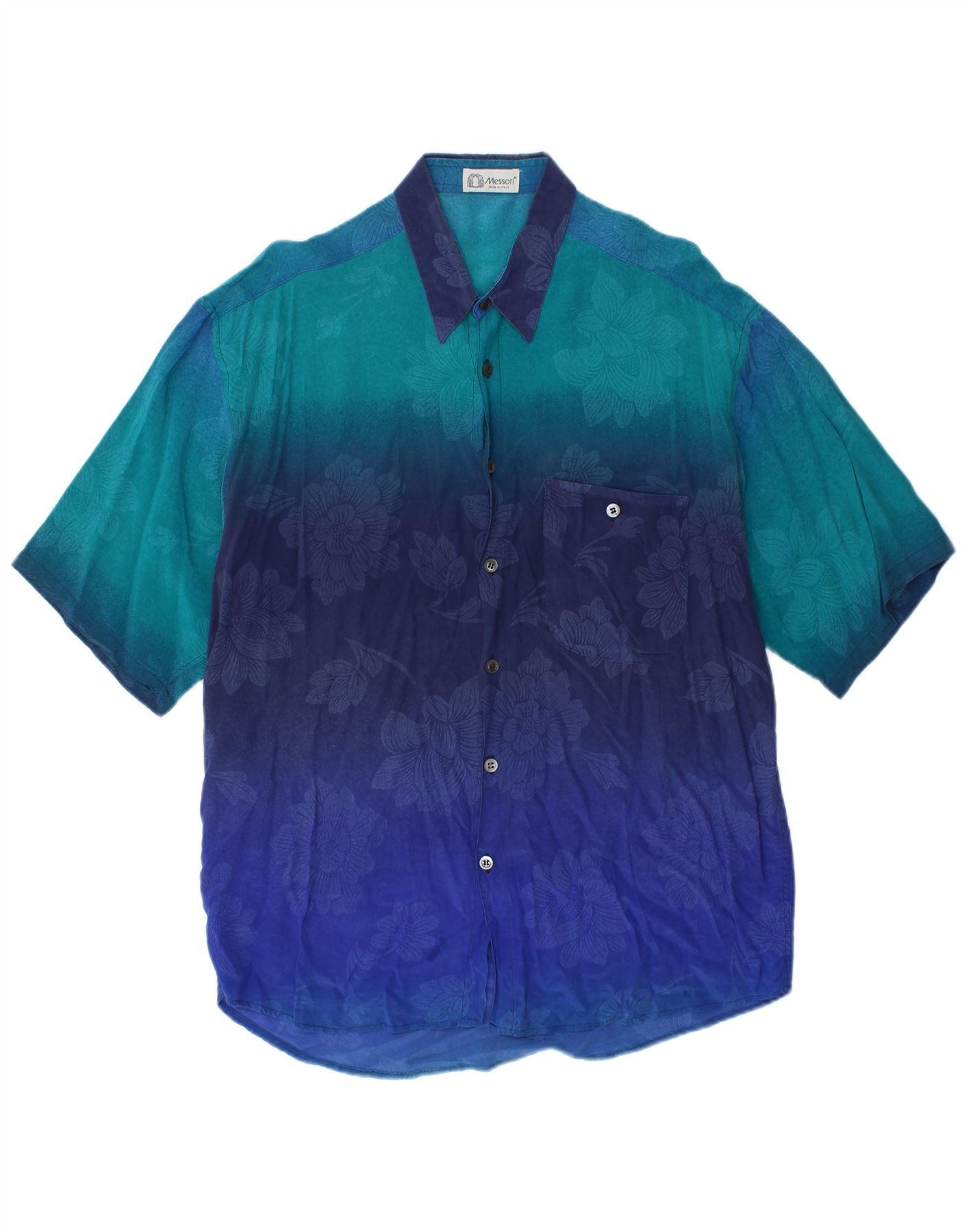 MESSORI Chemise à manches courtes pour hommes, grand motif floral bleu