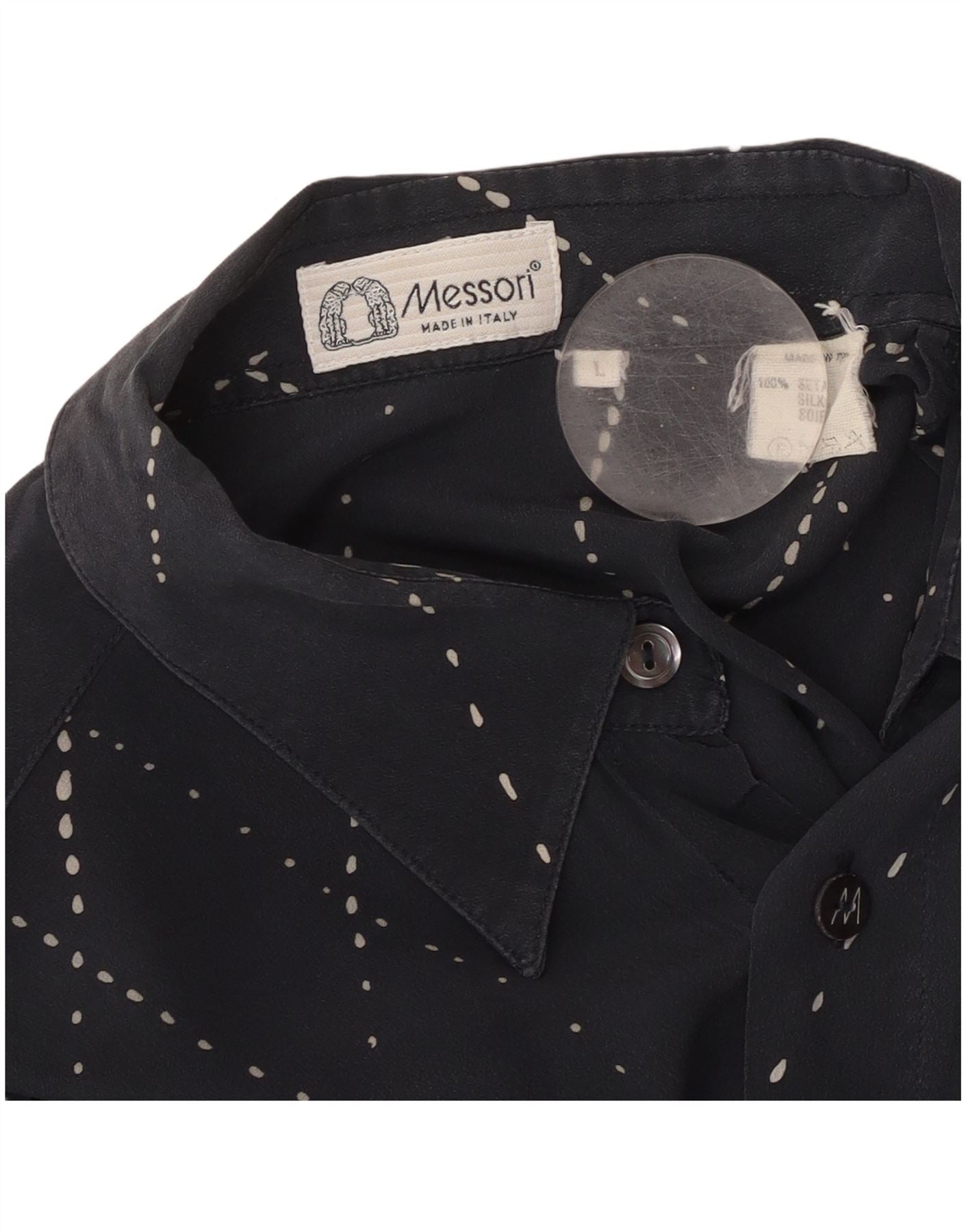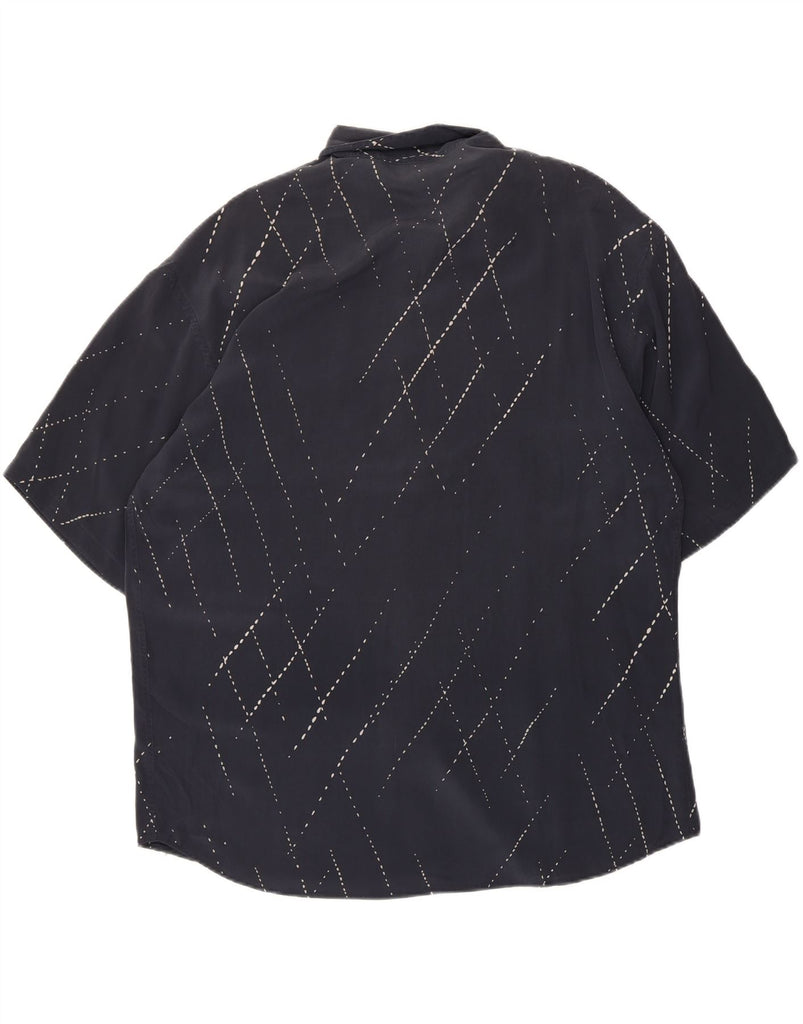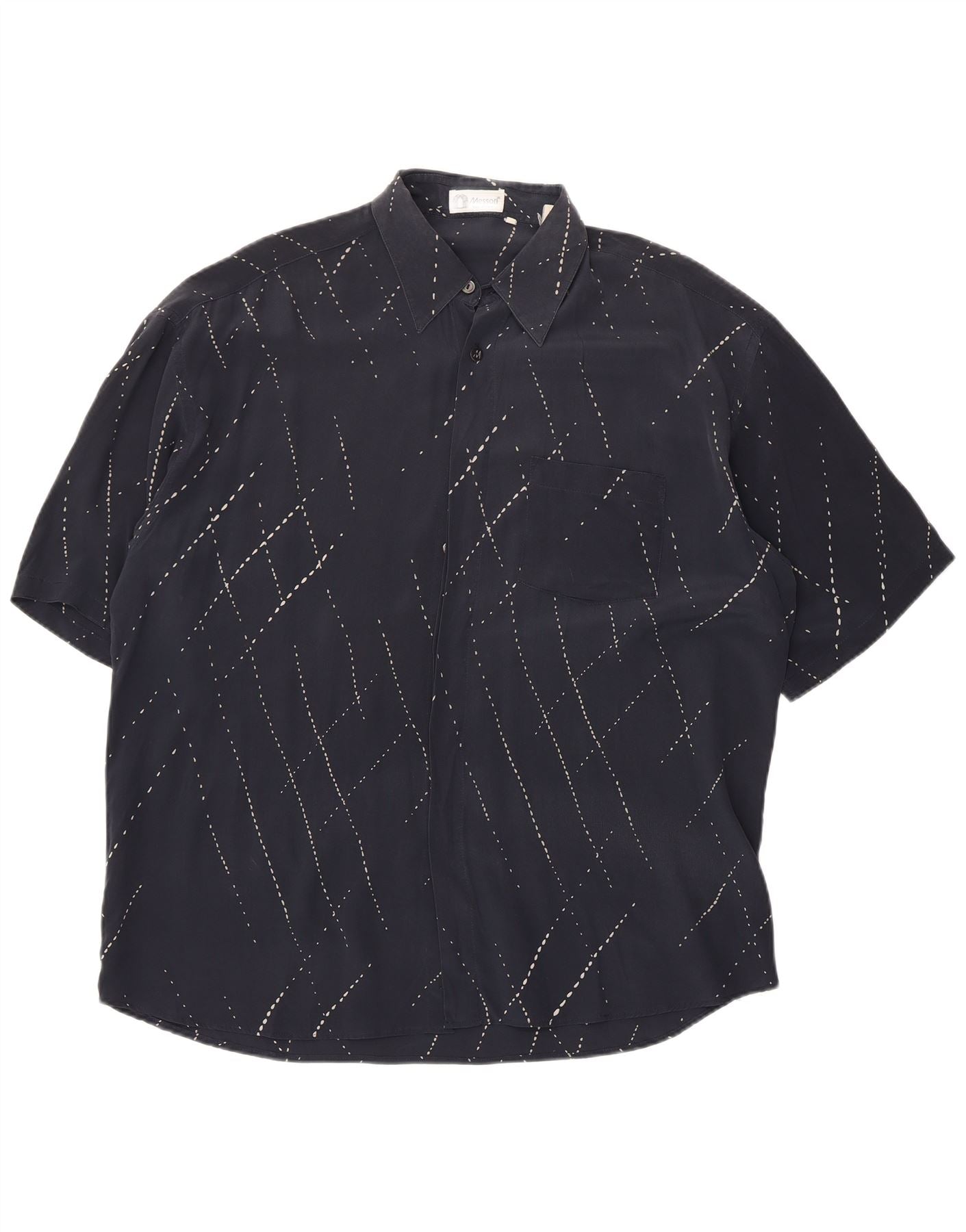 MESSORI Chemise à manches courtes pour homme Large Bleu marine Argyle/Diamond Soie