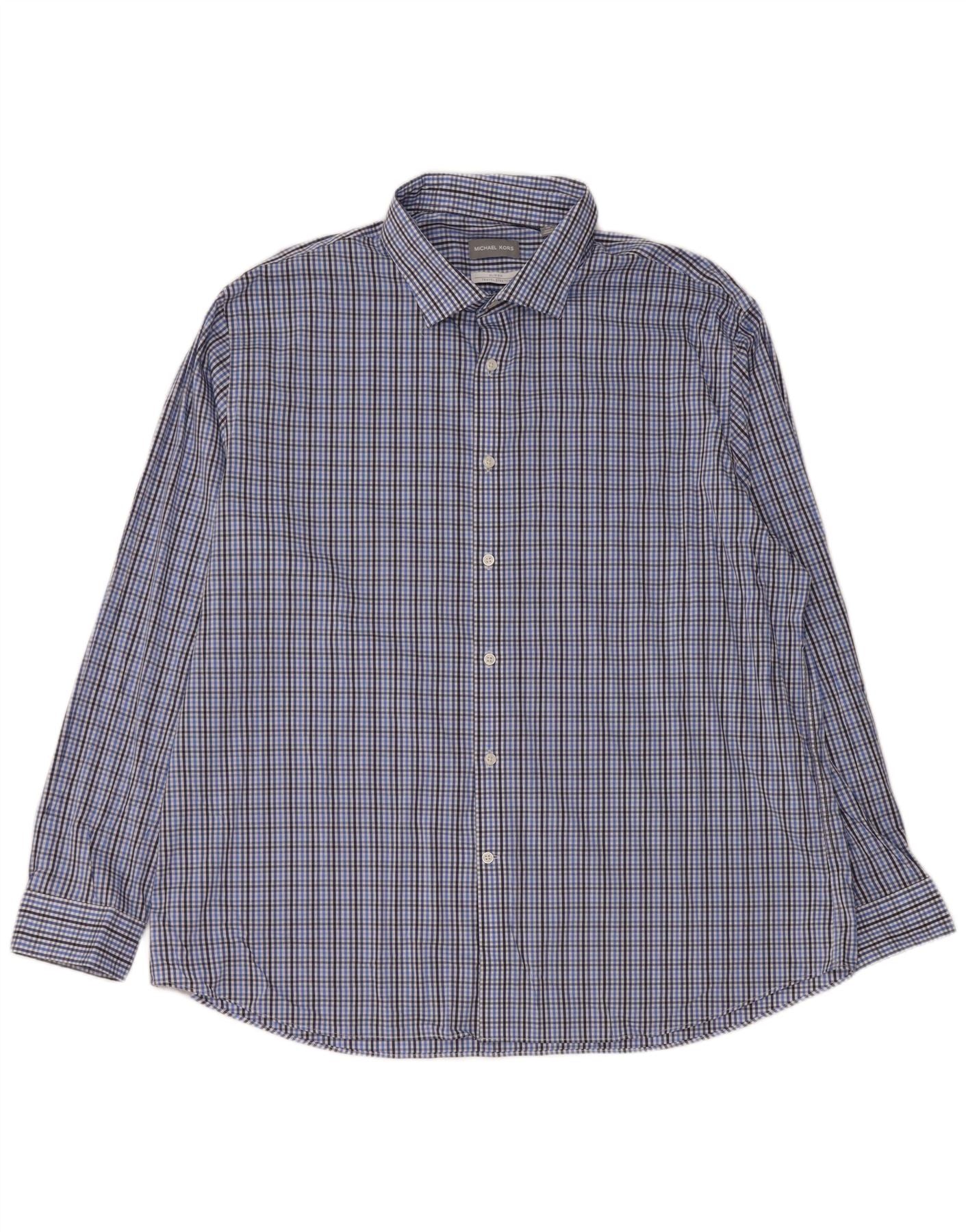 MICHAEL KORS Chemise Slim Fit Homme Taille 18 1/2 2XL Coton à Carreaux Bleu