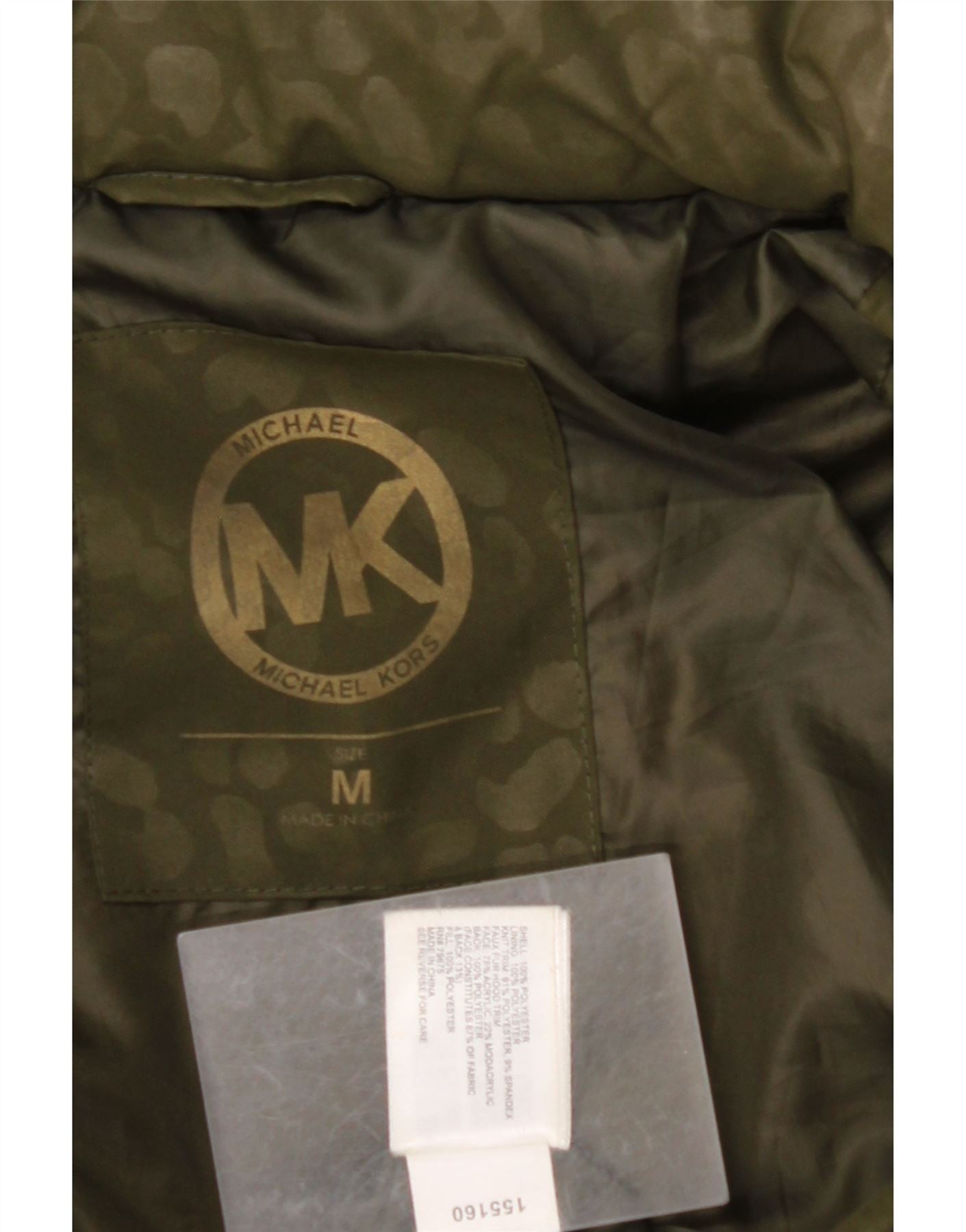 MICHAEL KORS Manteau rembourré à capuche pour femme UK 14 Kaki moyen imprimé animal