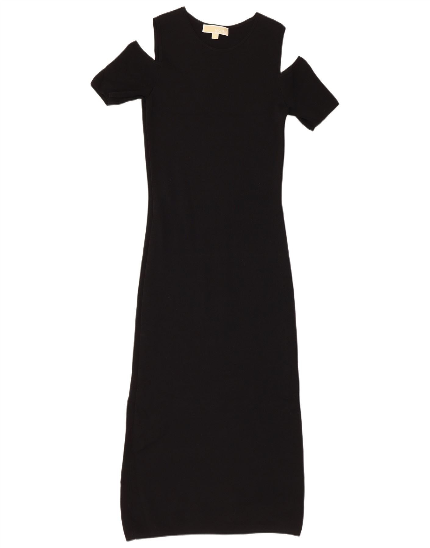 MICHAEL KORS Robe longue à épaules dénudées pour femme UK 12 Viscose noire moyenne
