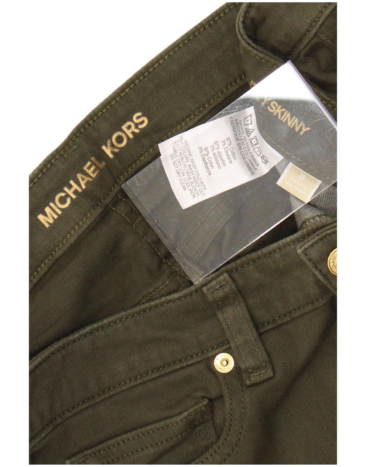 MICHAEL KORS Pantalon décontracté skinny pour femme US 8 Medium W28 L29 Kaki