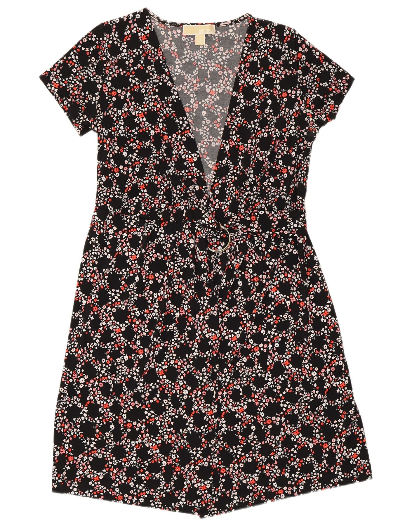 MICHAEL KORS Robe portefeuille pour femme UK 10 Petit polyester floral noir