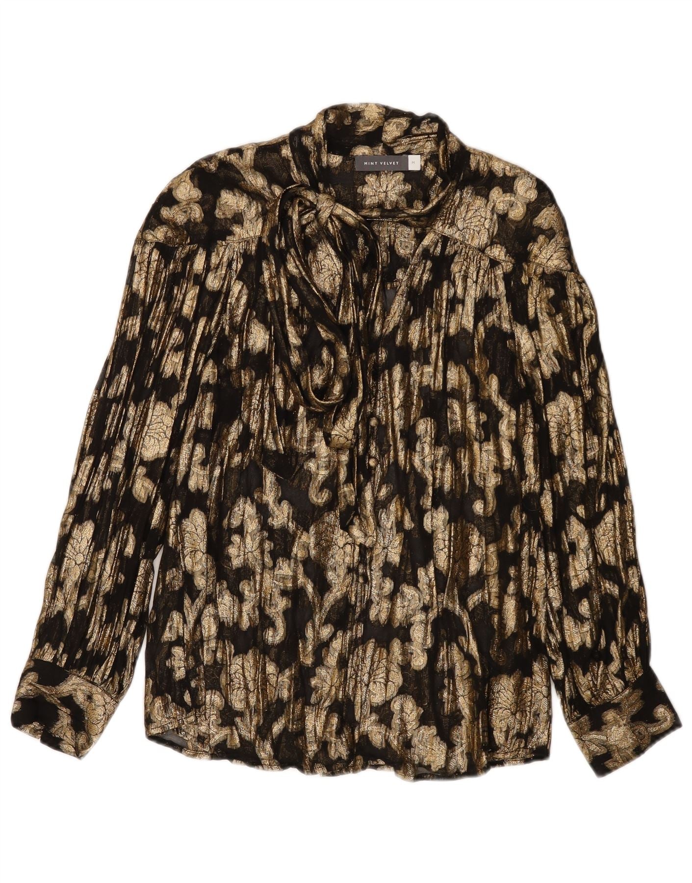 MINT VELVET Chemisier chemise à nouer sur le devant pour femme UK 14 Viscose florale dorée moyenne