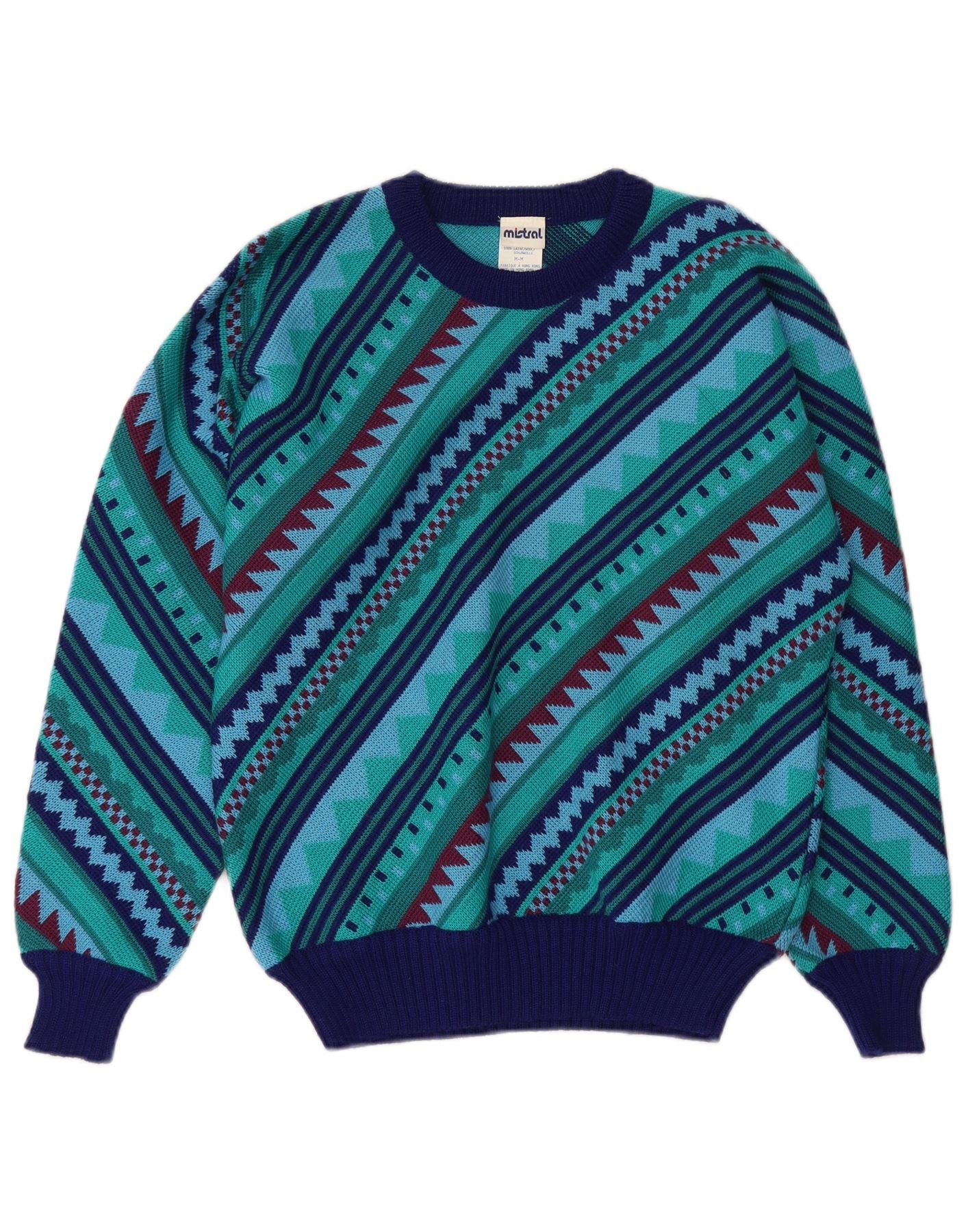 MISTRAL Pull col bateau pour homme en laine géométrique bleu marine moyen
