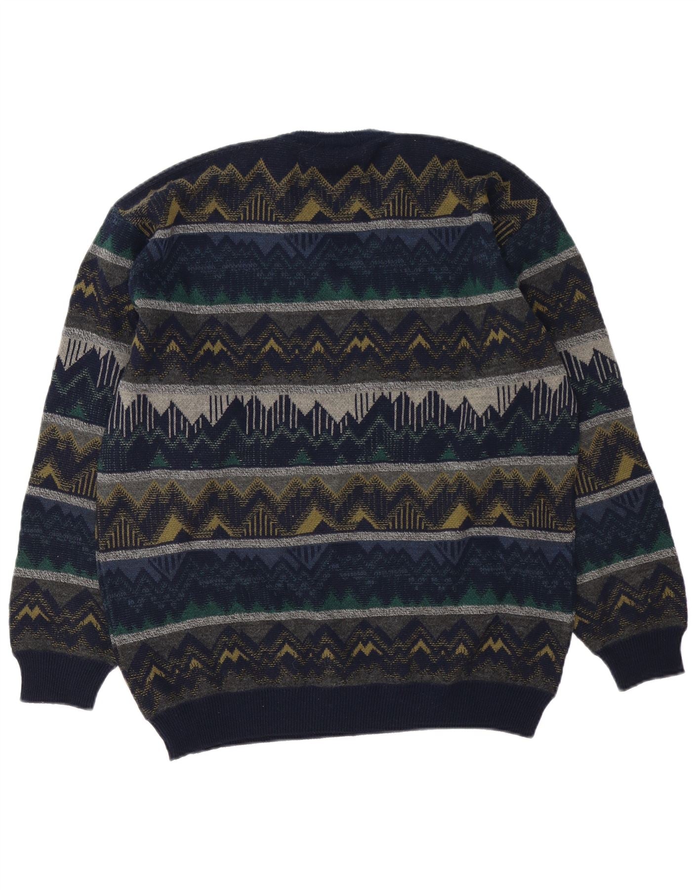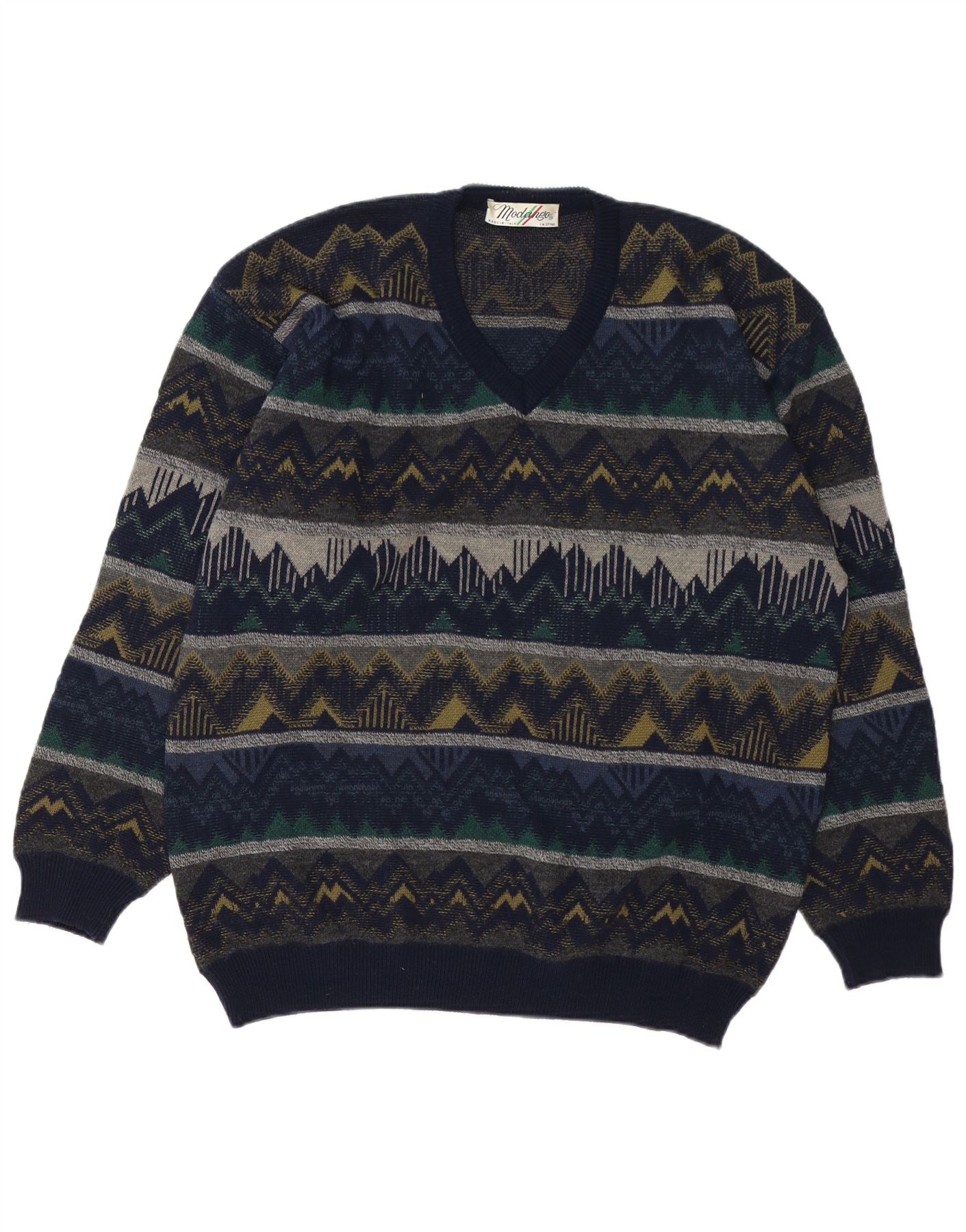 MODANGO Pull Col V Homme Grand Bleu Marine Géométrique Acrylique