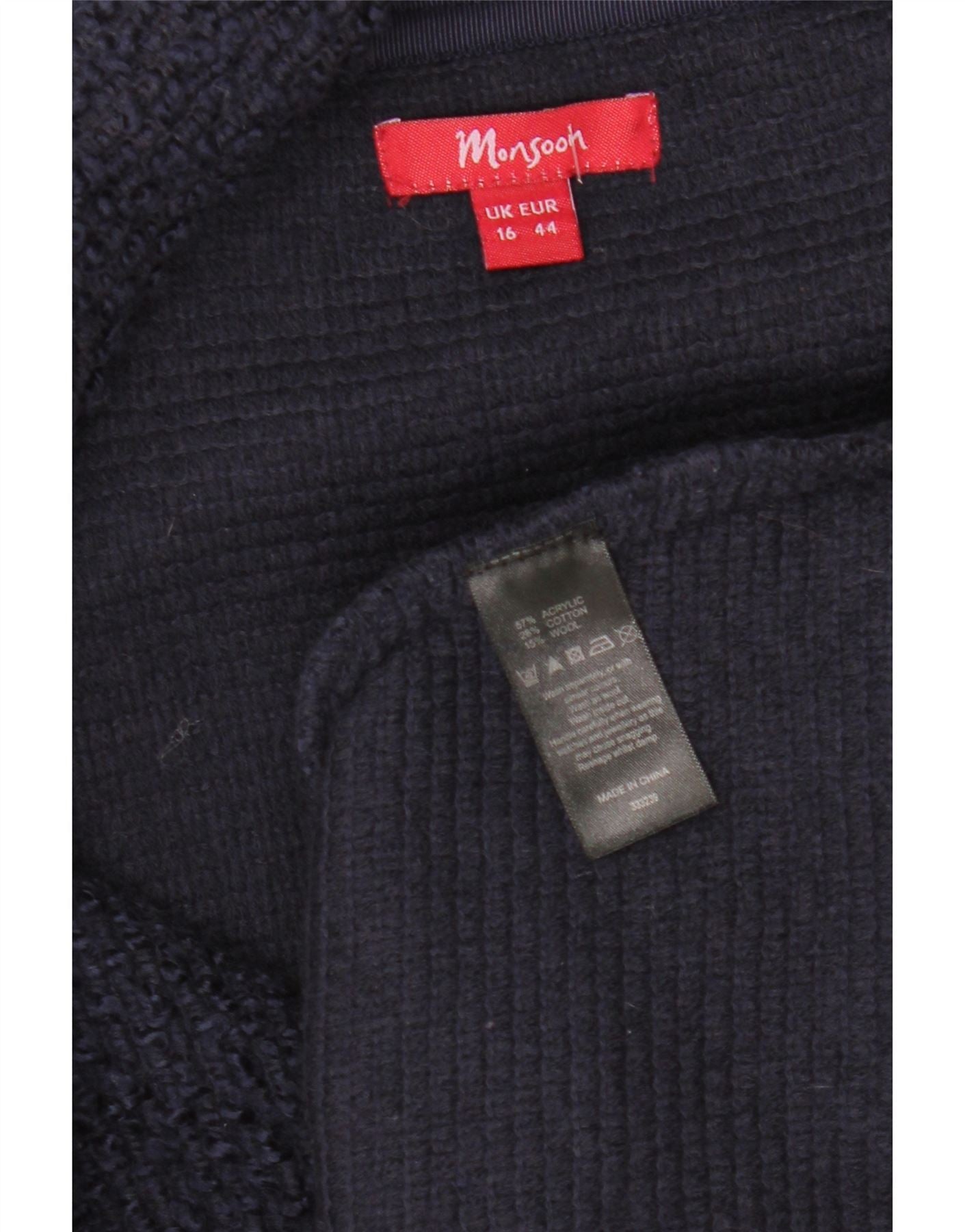 MONSOON Veste Blazer 3 Boutons Femme UK 16 Grand Bleu Marine Acrylique