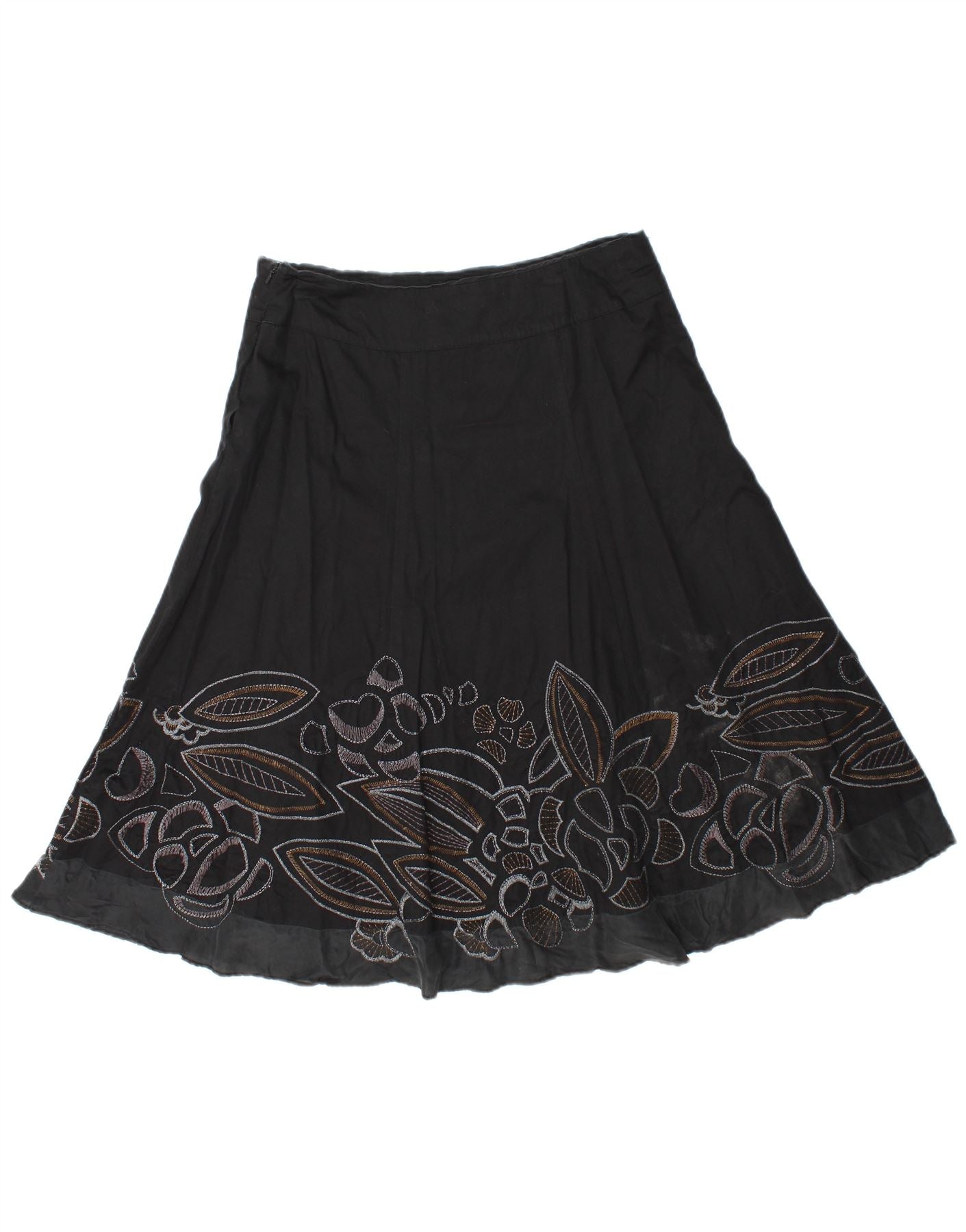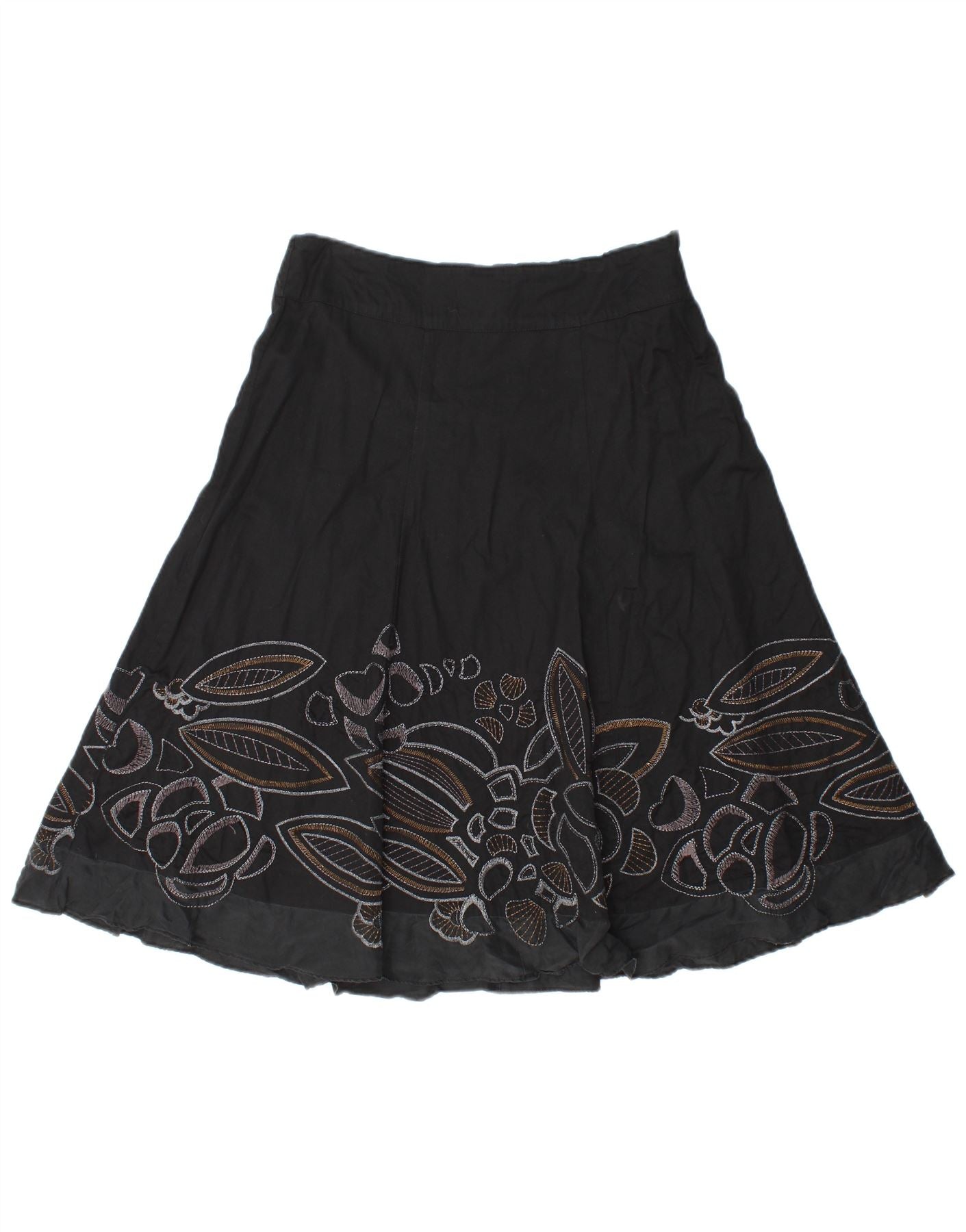MONSOON Jupe trapèze à motif abstrait pour femme UK 10 Small W30 Coton noir
