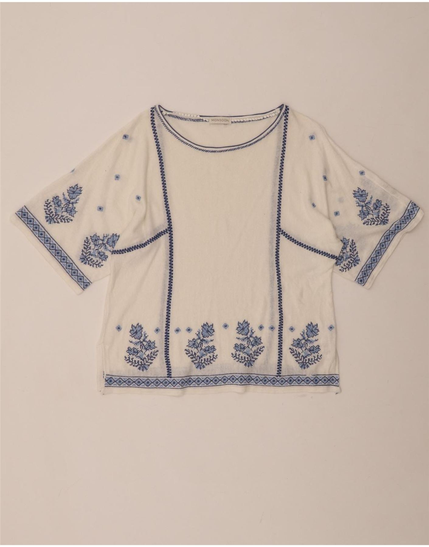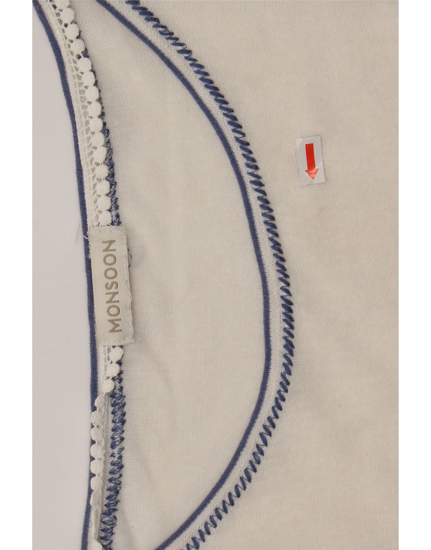 MONSOON Chemisier Femme Top UK 16 Grand Lin Floral Blanc Cassé