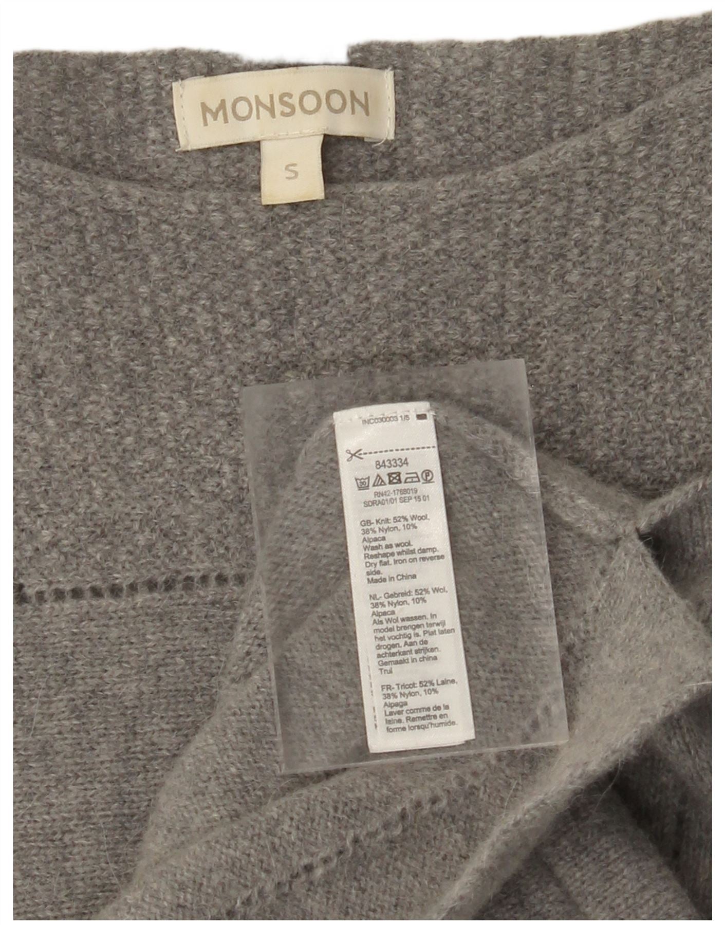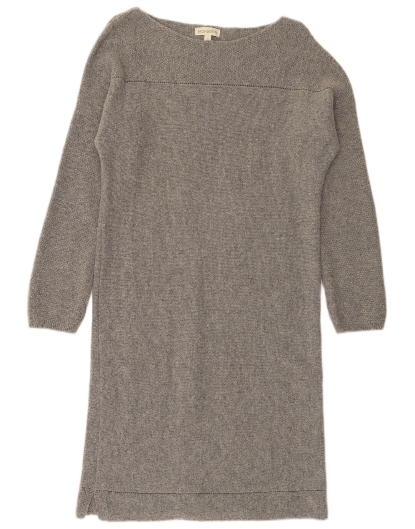 MONSOON Robe pull à manches longues pour femme UK 10 Petite laine grise