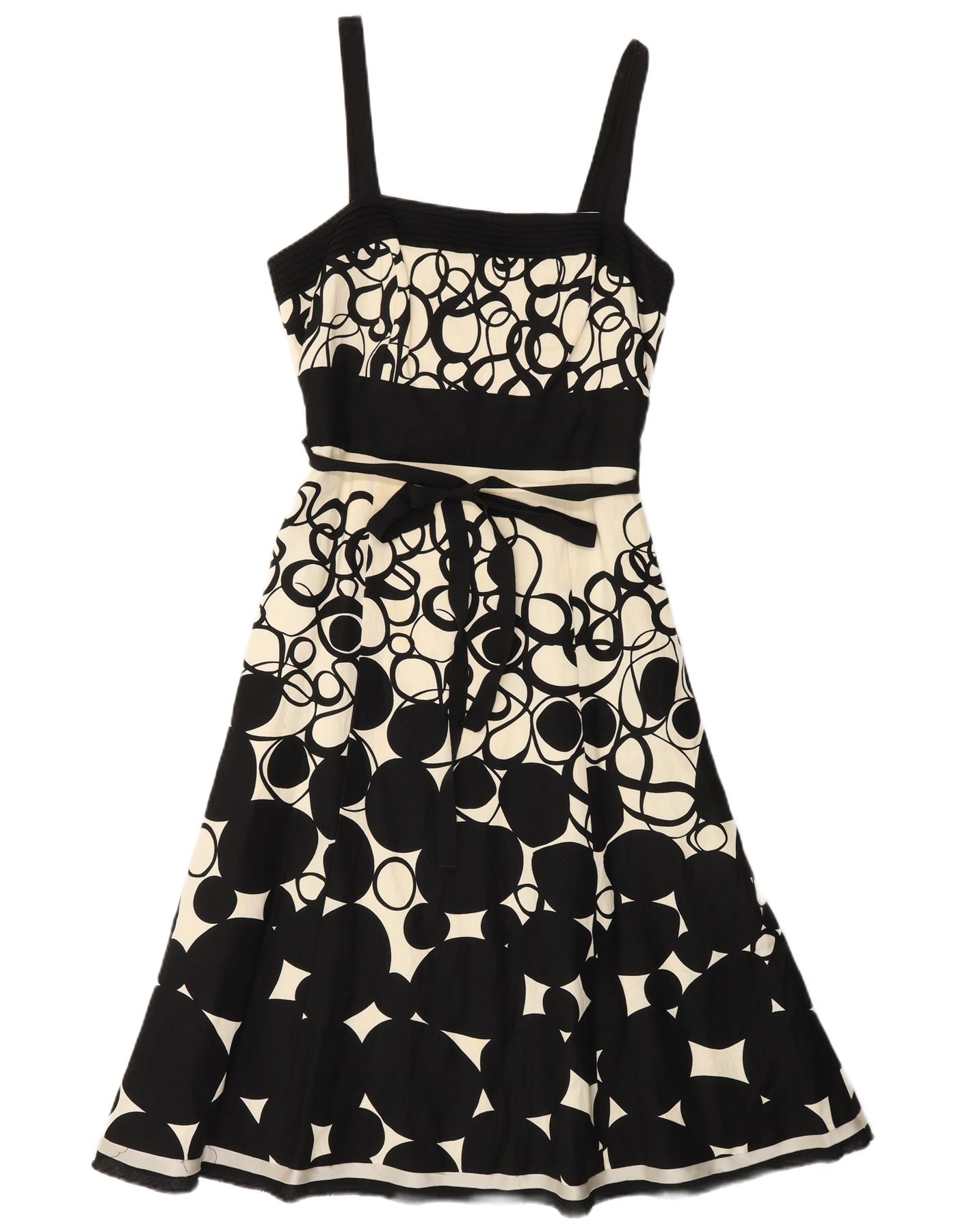 MONSOON Robe trapèze sans manches pour femme UK 10 Petit lin géométrique noir