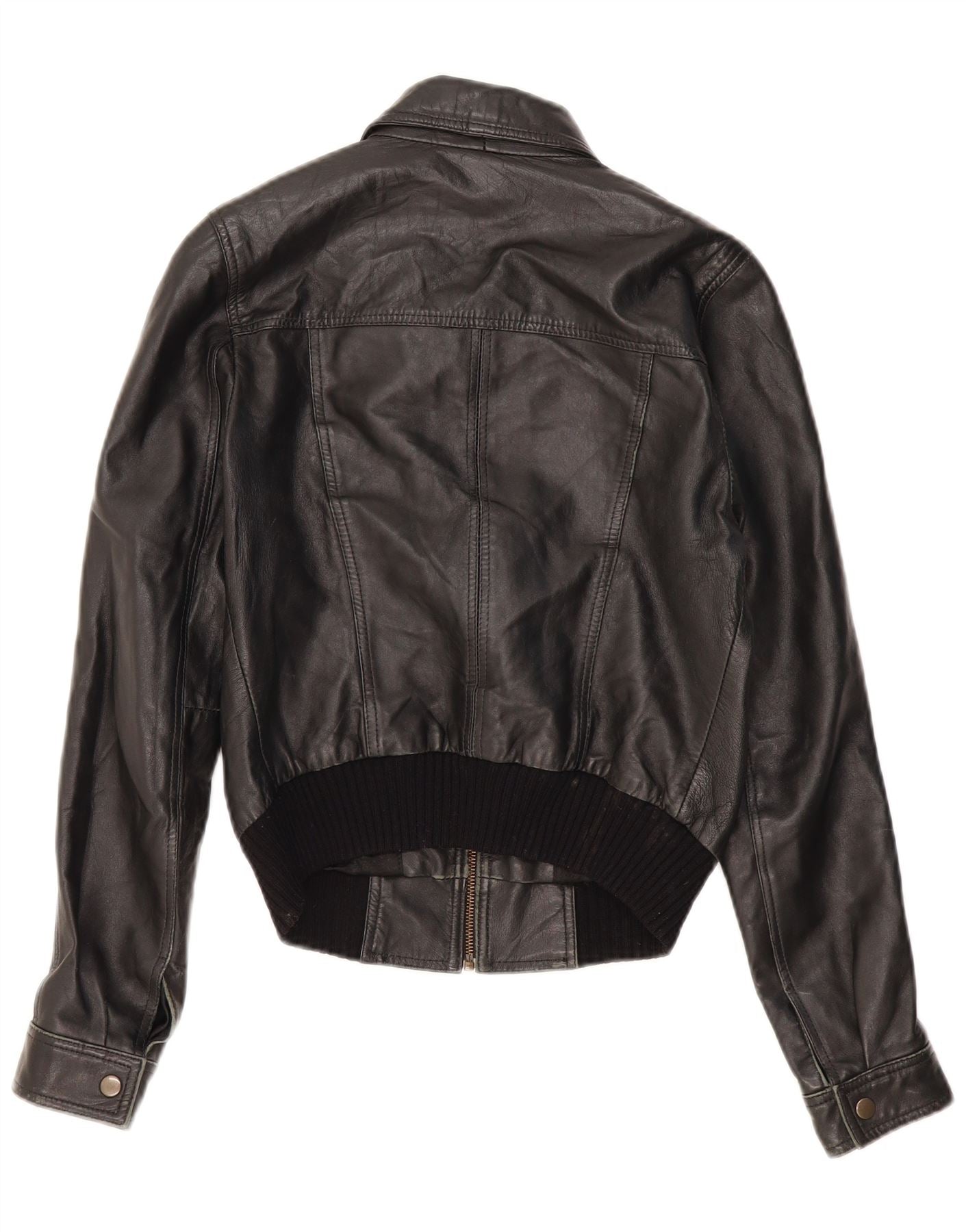 MONTGOMERY Veste en cuir crop pour femme UK 14 Grand cuir noir
