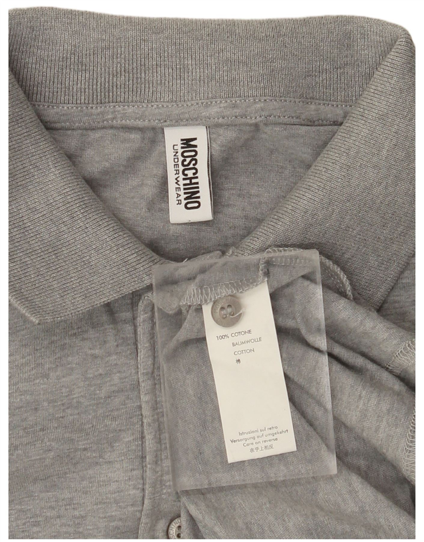 - AI Description: This Moschino men's Polo Shirt is crafted from 100 percent cotton knit, offering a breathable and comfortable feel. It features a classic collared neckline and short sleeves, perfect for a smart casual look. The button closure adds a refined touch. A distinctive graphic and logo accent provide signature Moschino styling. Its regular fit ensures ease of movement and a timeless silhouette.