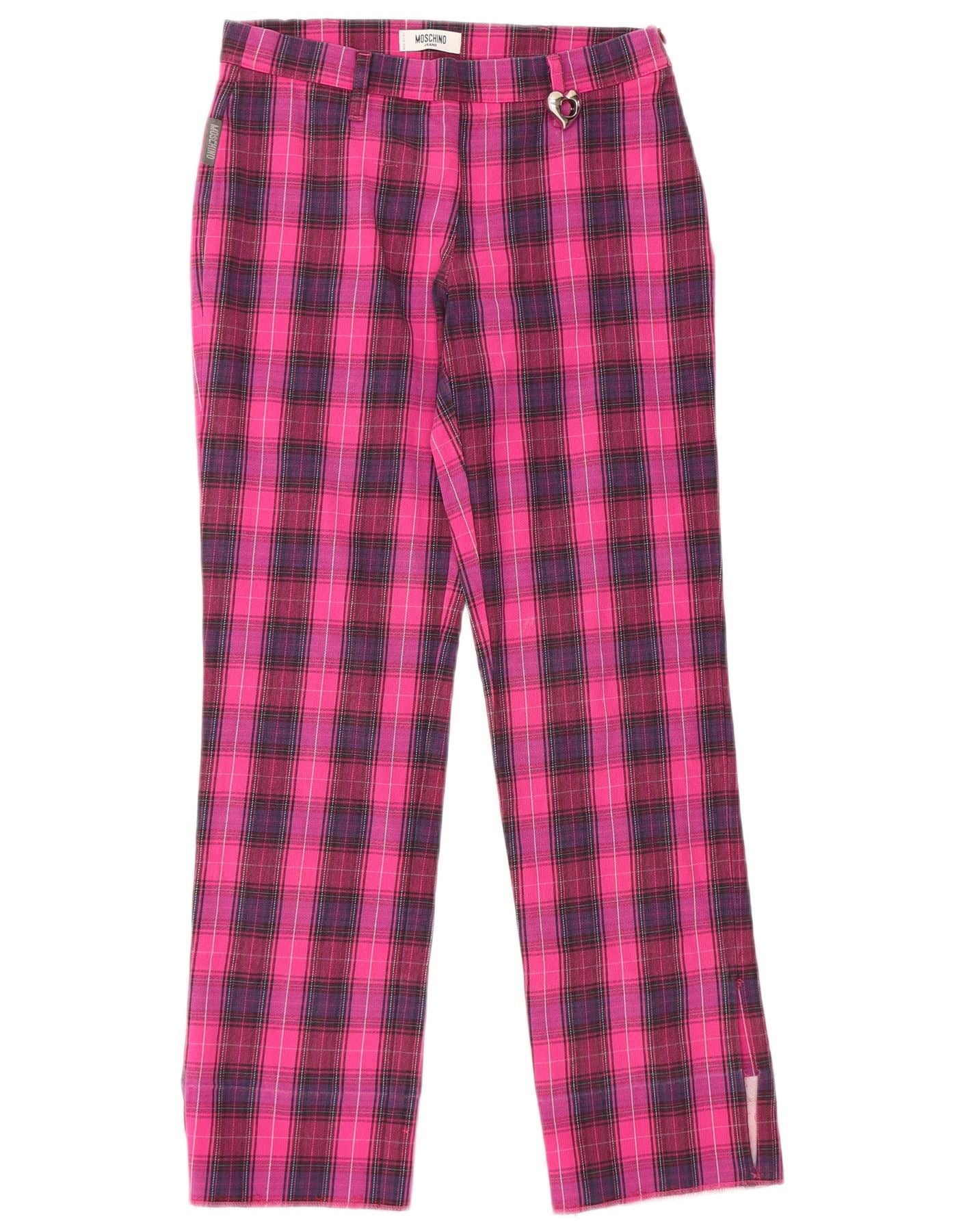 MOSCHINO Pantalon droit décontracté pour femme UK 10 Small W28 L28 Rose à carreaux