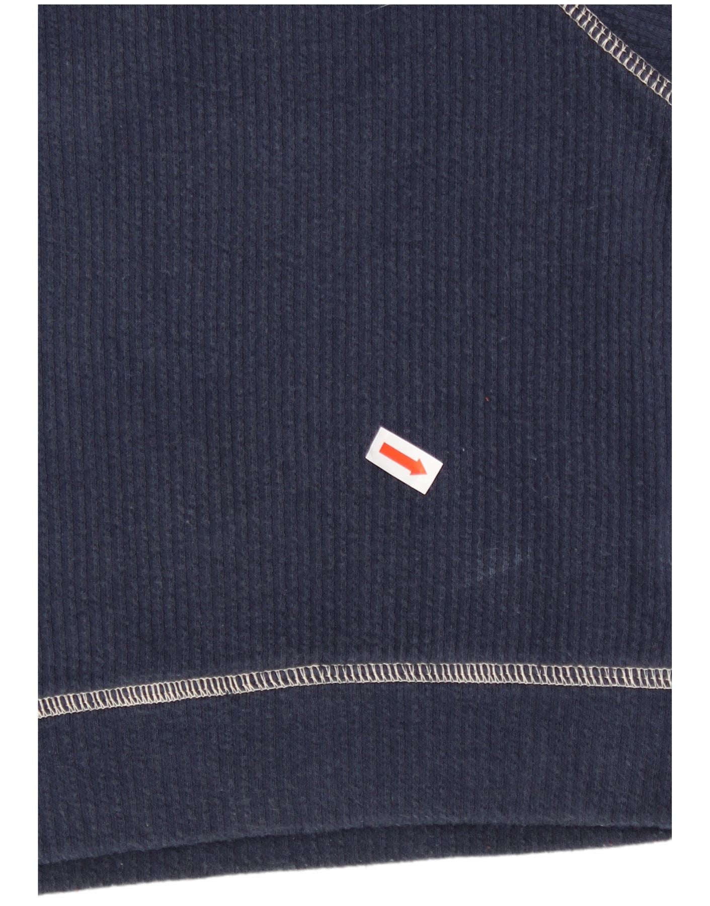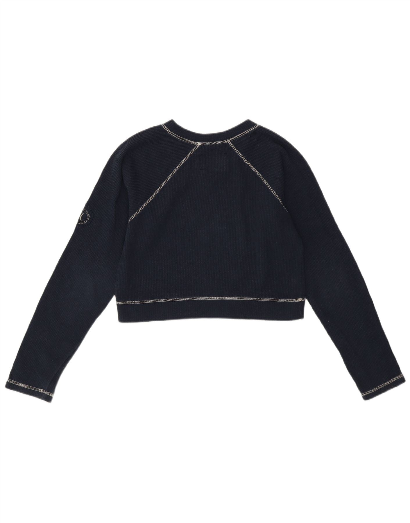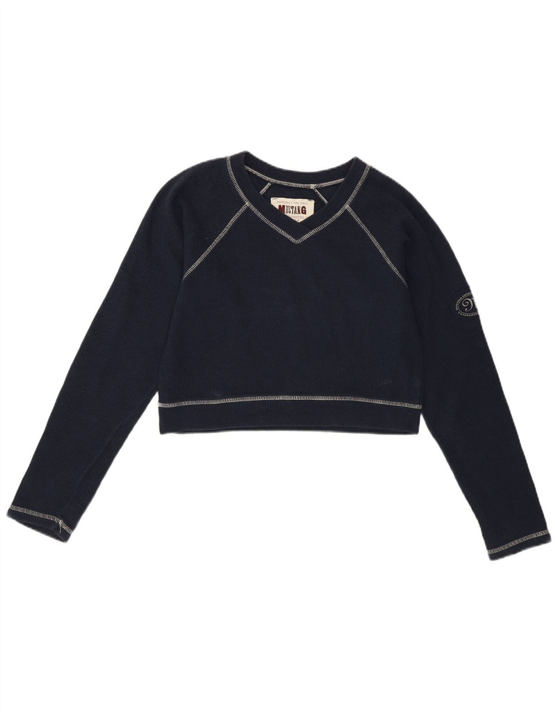 MUSTANG Womens Crop Top Long Sleeve UK 12 Medium Navy Blue Cotton