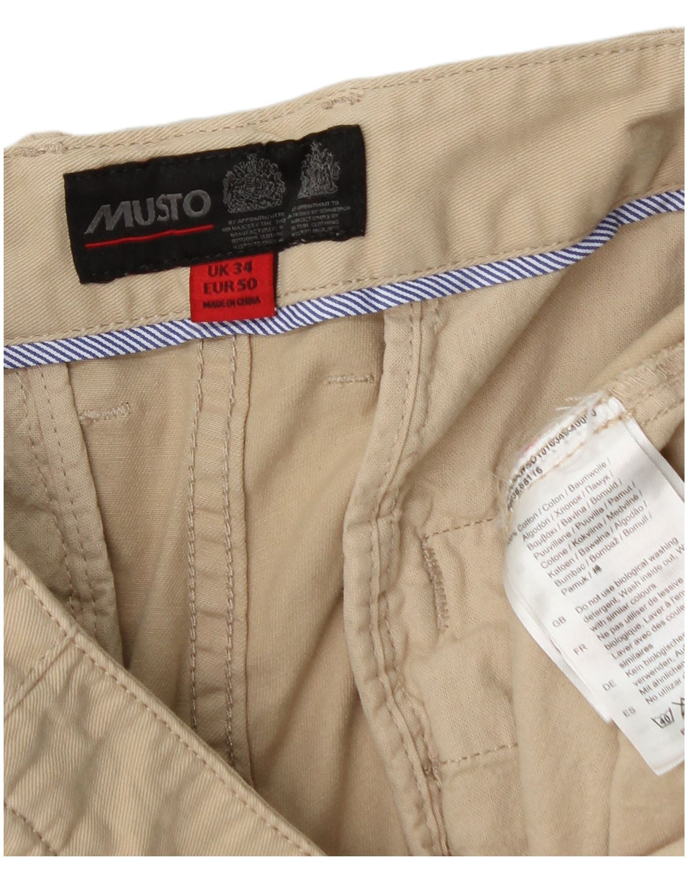 - AI Description: These Musto mens Chino Shorts are crafted from 100 percent woven cotton, offering a durable yet comfortable feel. The versatile beige colour ensures easy styling. They feature a regular fit with a straight leg for classic comfort. A button closure provides a secure fastening. Practical pockets add functionality to the design, making them ideal for everyday wear.