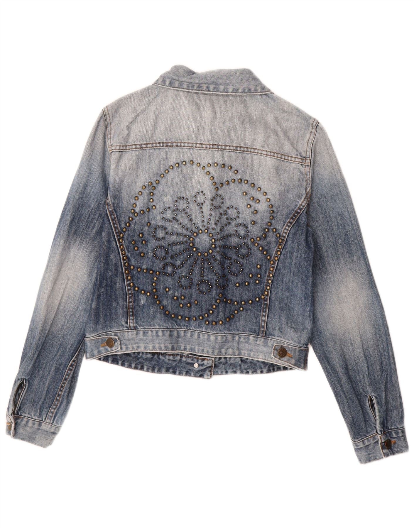 Naf Naf Veste en Jean Femme UK 12 Coton Floral Bleu Moyen