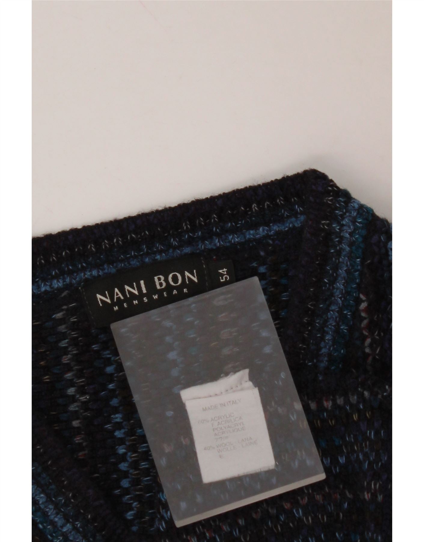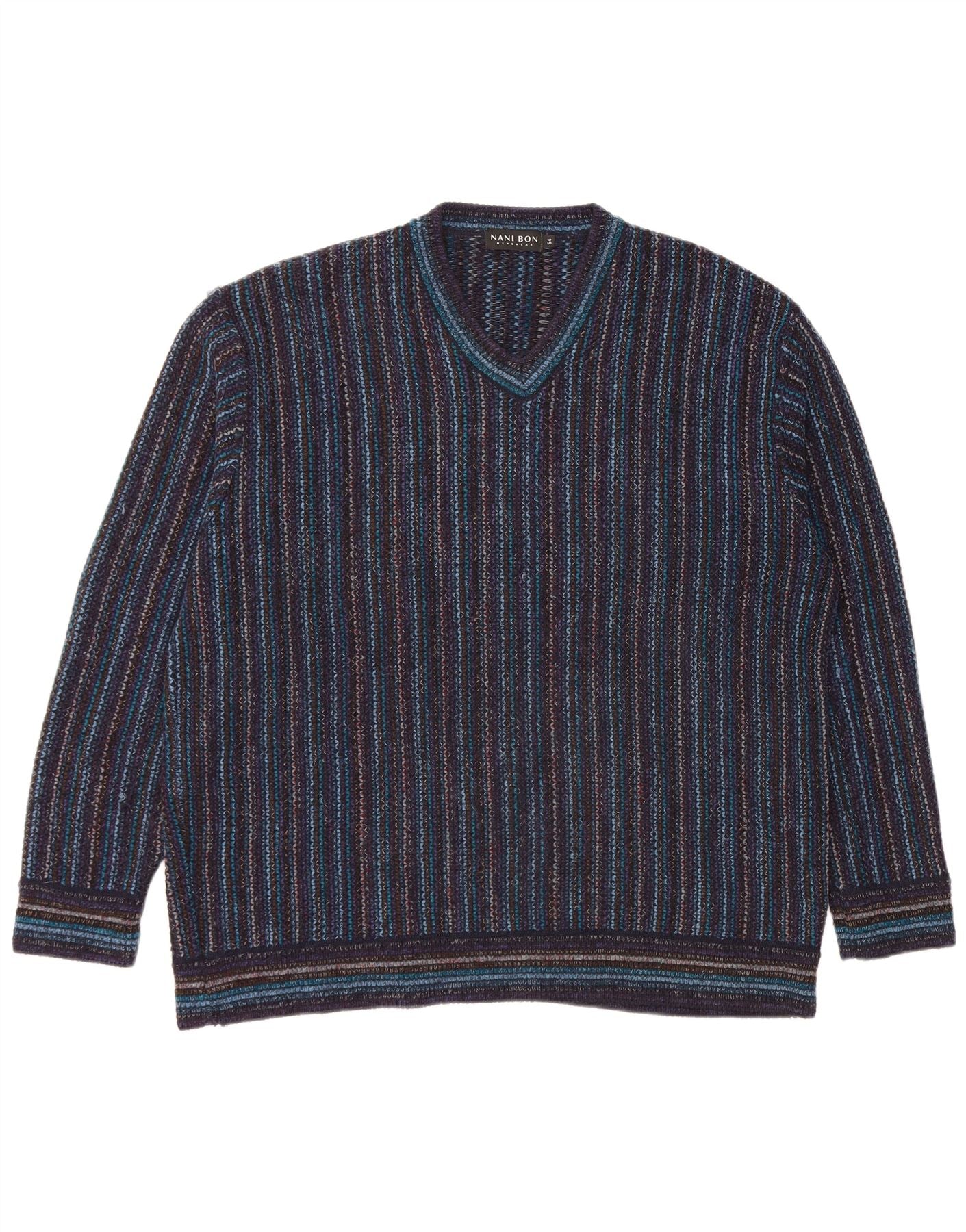 NANI BON Pull Col V Homme IT 54 XL Bleu Marine Rayé Acrylique
