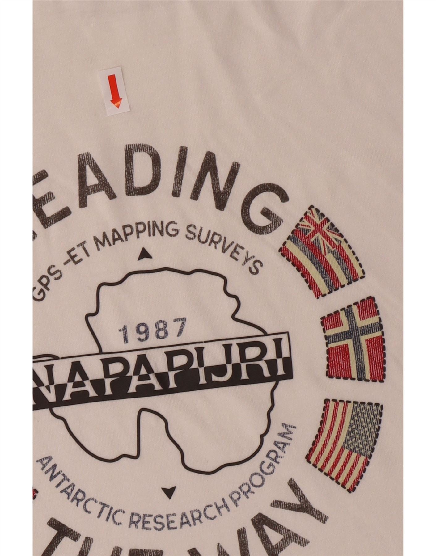 Napapijri Homme T-Shirt Graphique Top Petit Blanc Cassé Coton