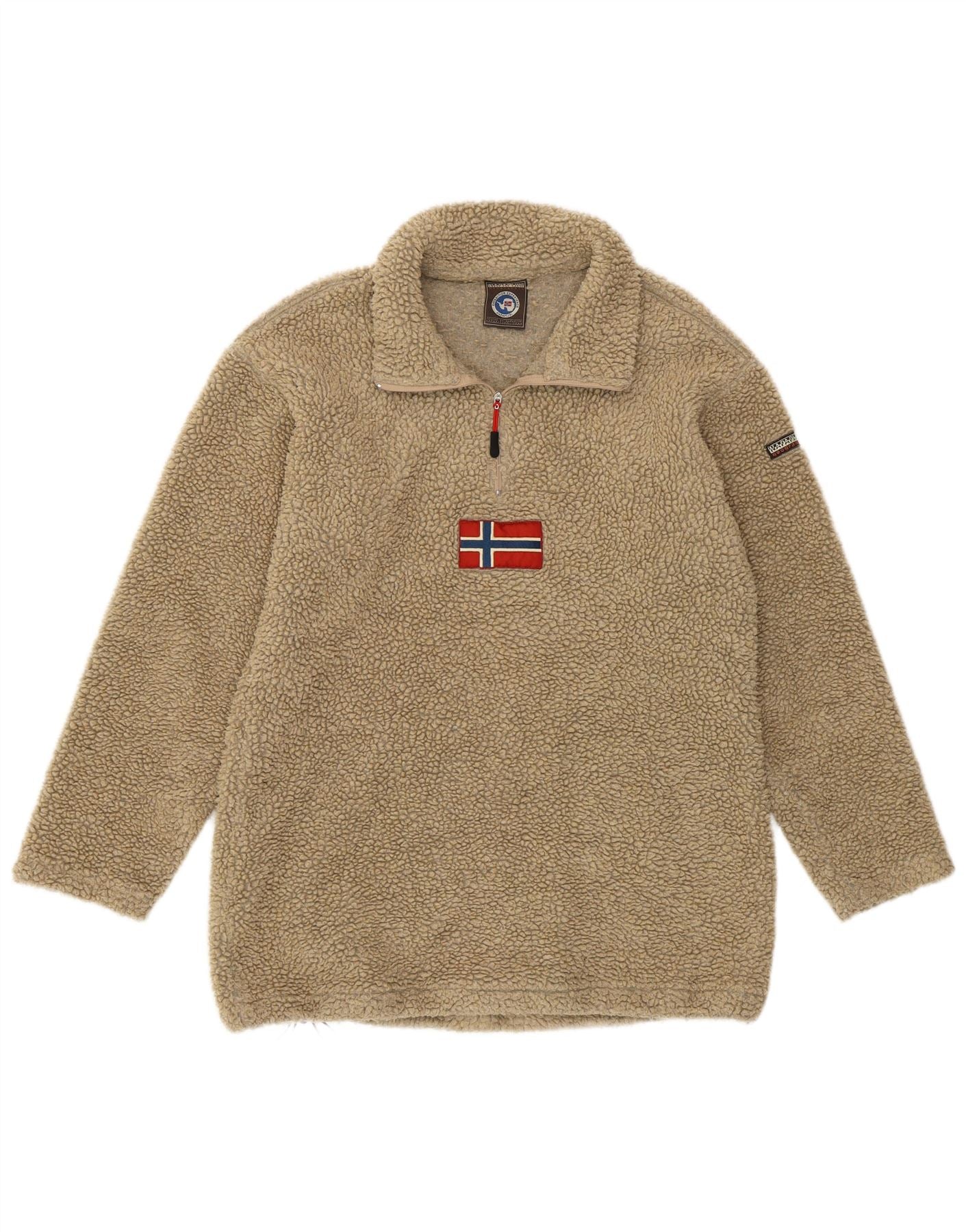 Napapijri Pull polaire graphique à col zippé pour femme Large Beige Polyacrylique