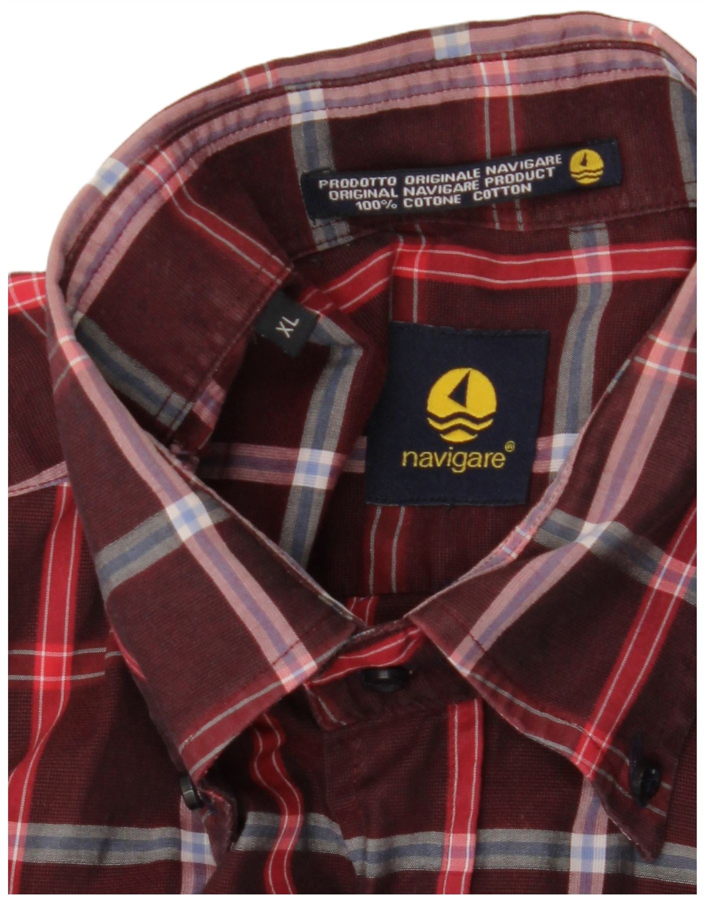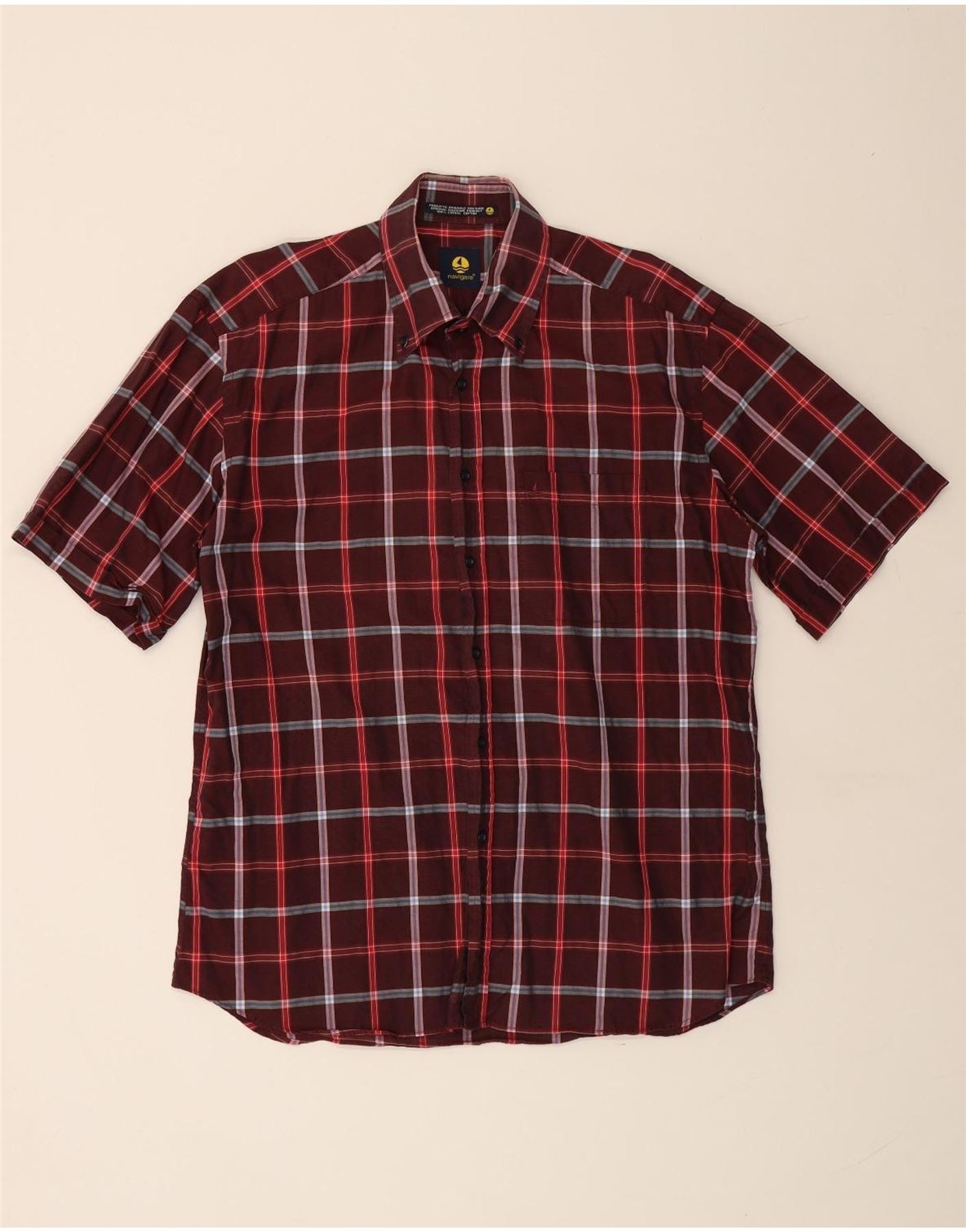 NAVIGARE Chemise à manches courtes pour homme XL en coton à carreaux bordeaux