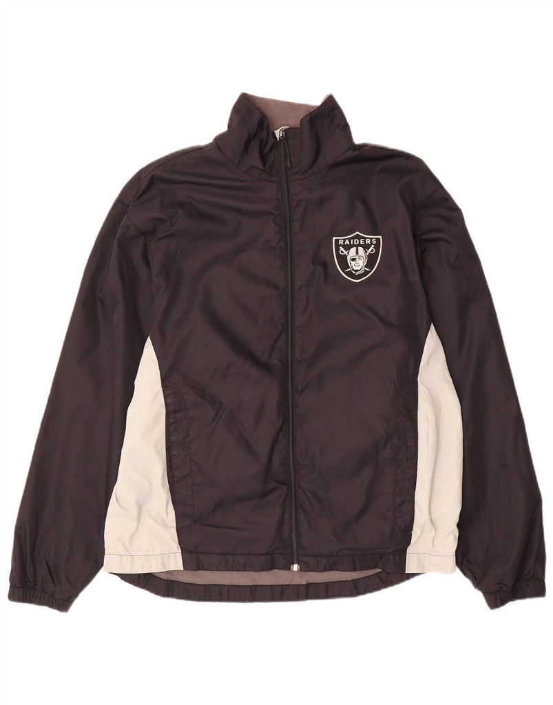 NFL Mens Raiders Tracksuit Top Jacket UK 38 Medium Black Colourblock Nylon