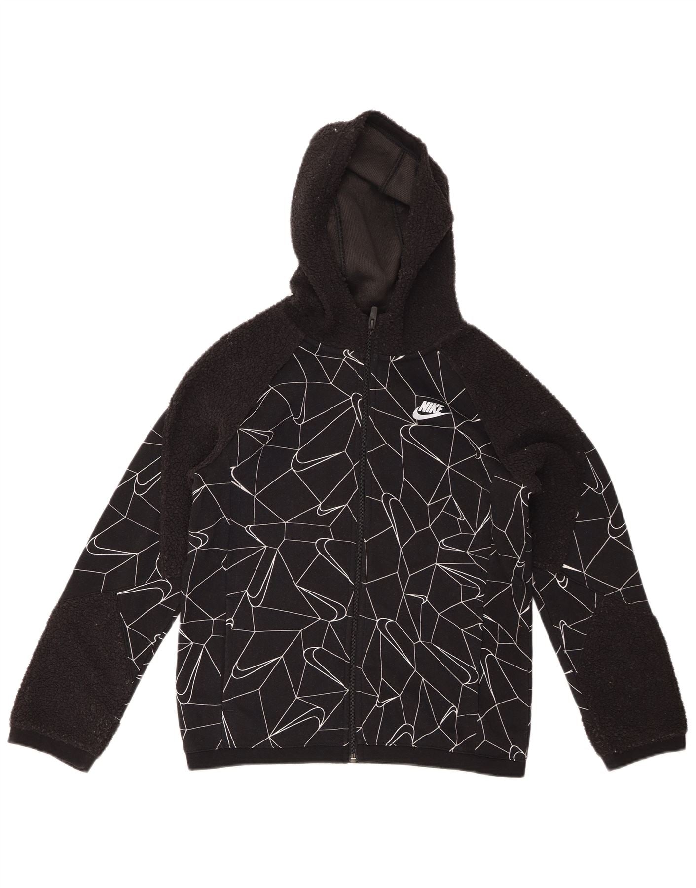 NIKE Pull à capuche zippé pour garçon 12-13 ans Grand coton géométrique noir