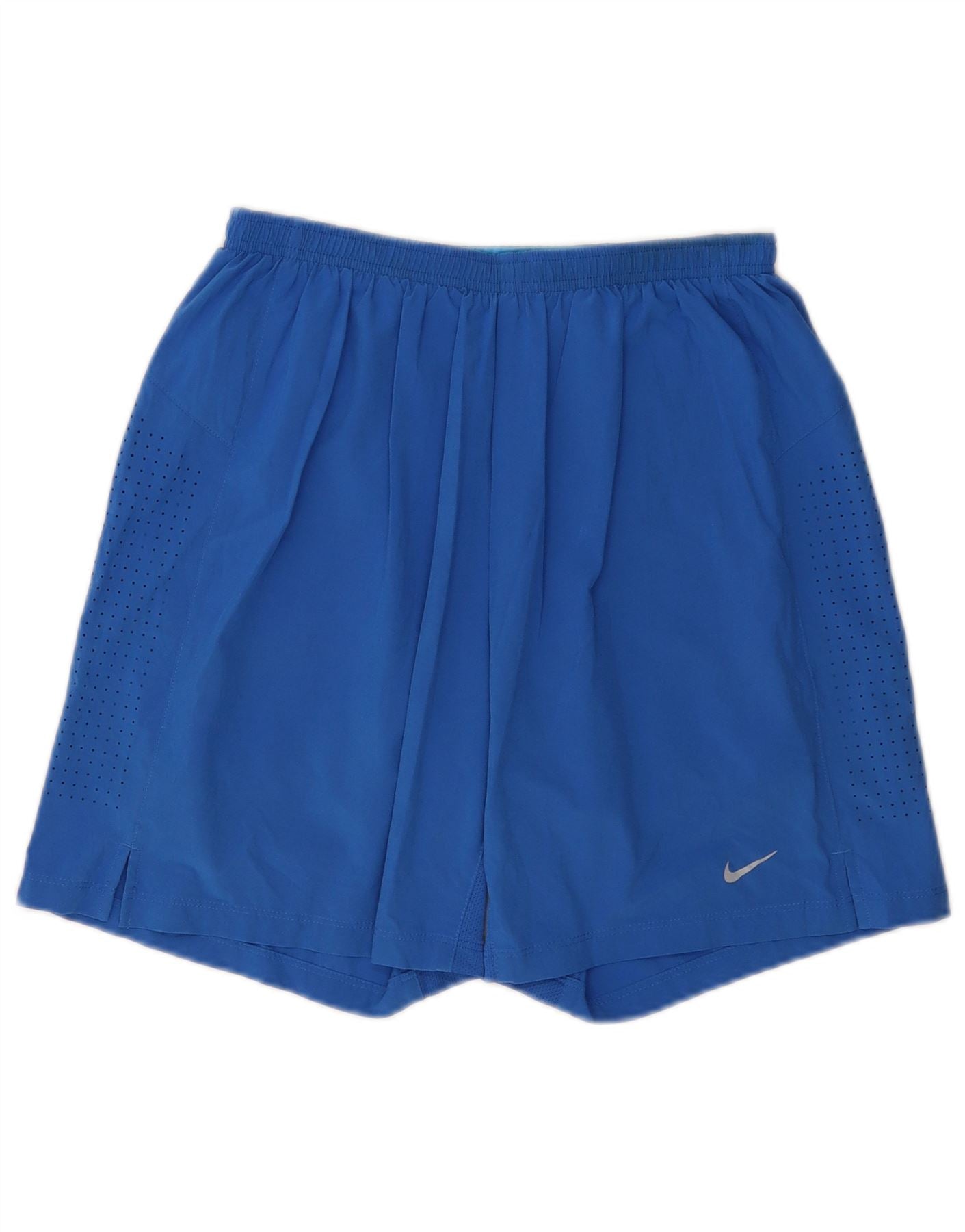- Description de l'IA : Ce short de course Nike pour hommes est fabriqué à partir d'un tissu en mesh bleu léger et respirant. Il est doté d'une taille élastiquée à enfiler, assurant une coupe athlétique et confortable. Les poches zippées offrent un rangement sécurisé pour les essentiels. De subtils détails perforés sur les côtés améliorent la ventilation. Un logo Nike discret ajoute une touche signature à ce short de sport à coupe classique, parfait pour les activités actives.