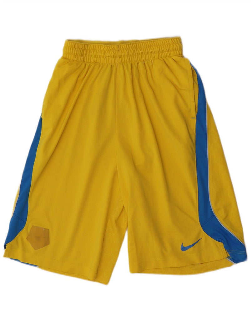 NIKE Short de sport Dri Fit pour hommes, petit, jaune, color block, en polyester