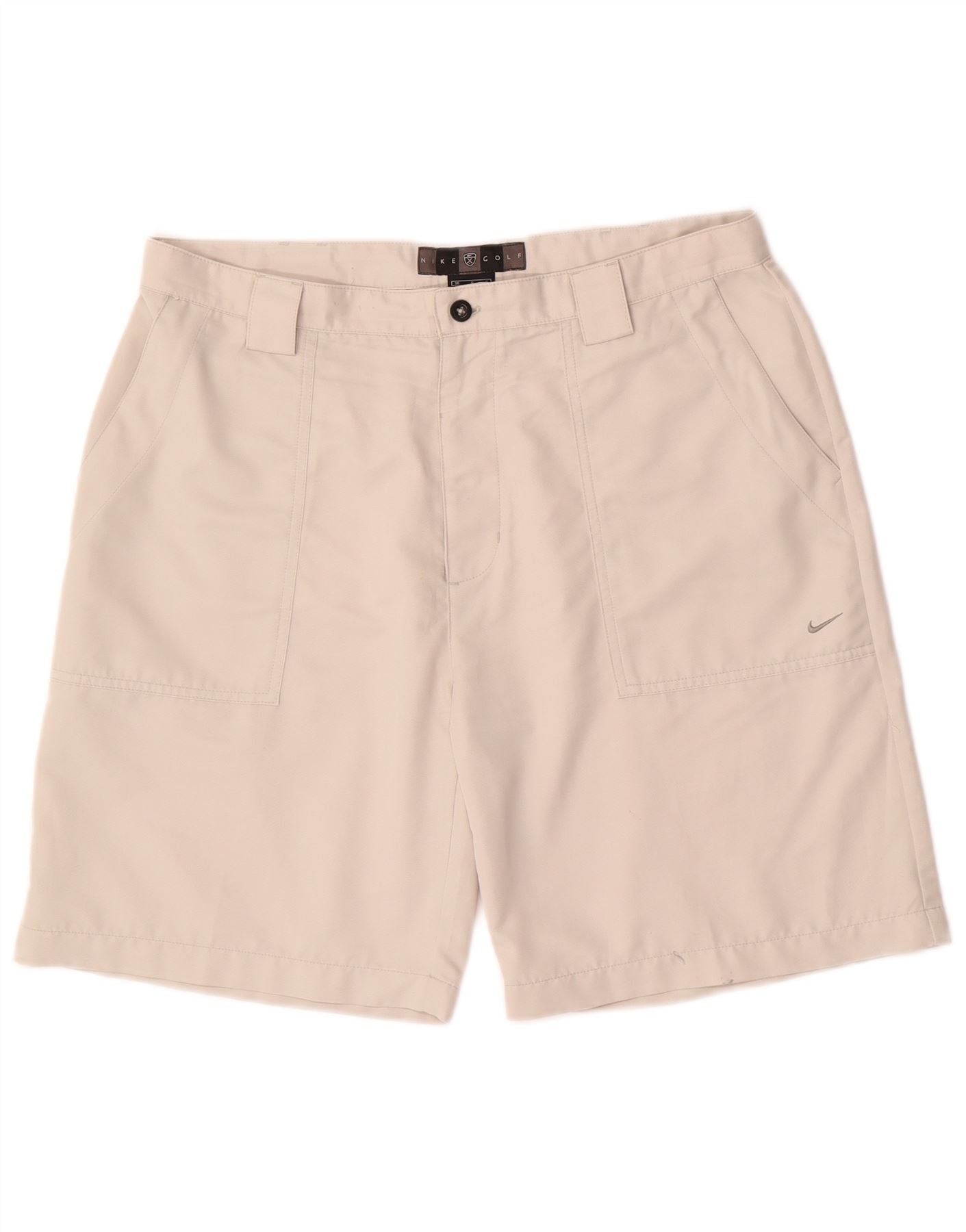 - AI Description: This Nike mens Chino Shorts are crafted from a lightweight woven fabric in a versatile beige hue. They feature a regular fit for comfortable movement, ideal for golf. The button and zip closure ensures a secure wear. Practical pockets offer convenience, while a subtle logo accent adds a signature touch. Designed for comfort and performance on the course, these shorts are a practical choice.