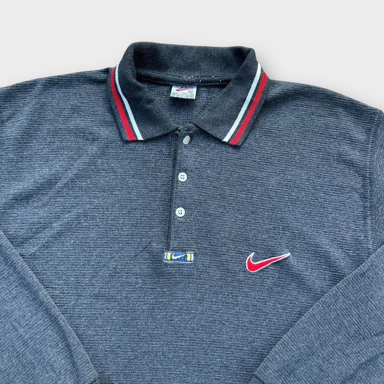 Polo de rugby Nike à manches longues vintage des années 90 en gris avec swoosh brodé sur la poitrine