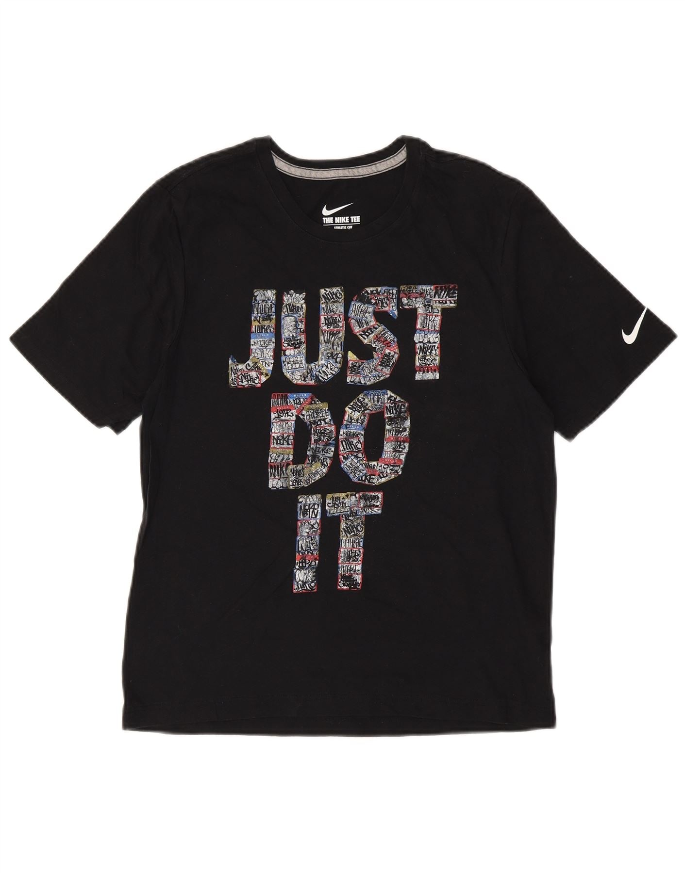 Home > Nike > aux femmes > Hauts > NIKE T-shirt graphique coupe athlétique pour femme UK 12 en coton noir moyen