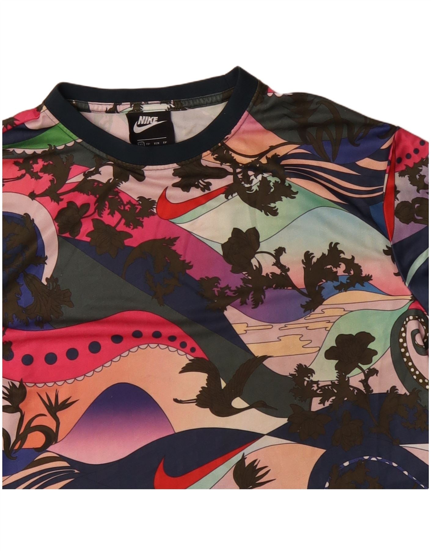 NIKE Womens Crop Graphic T-Shirt Top UK 6 XS Multicolore Floral