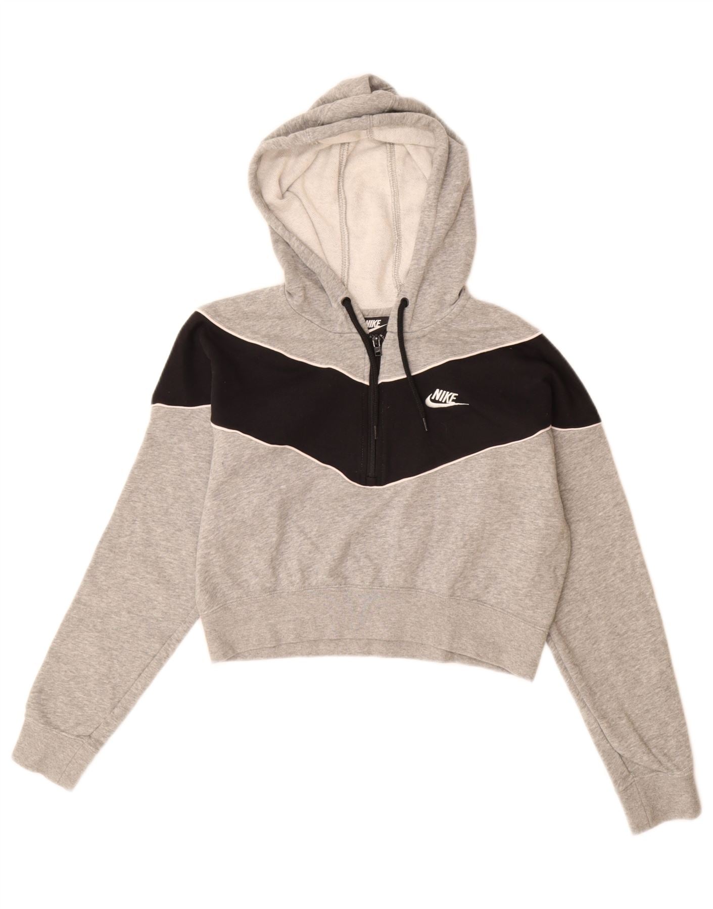 NIKE Pull à capuche court pour femme UK 14 Gris moyen Colorblock Coton